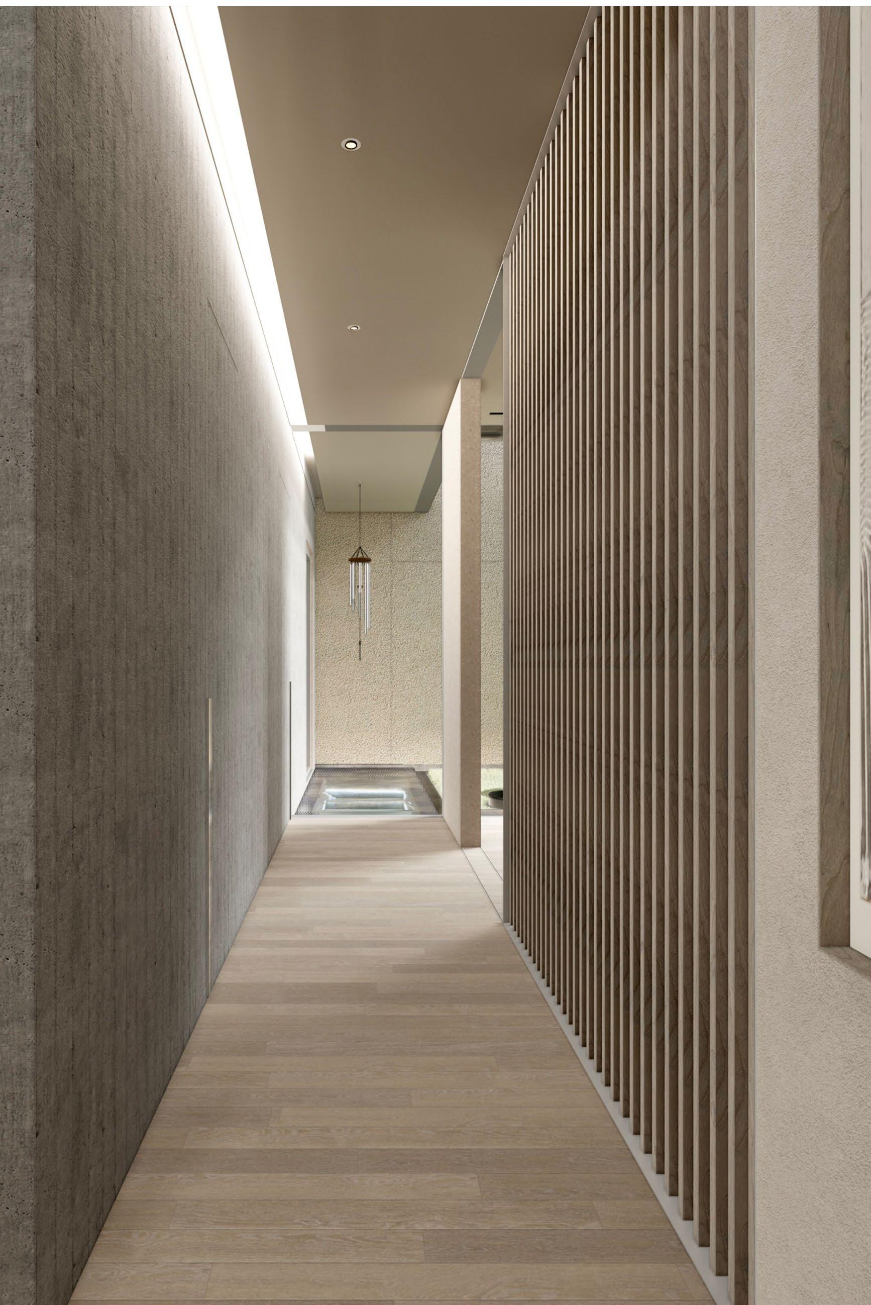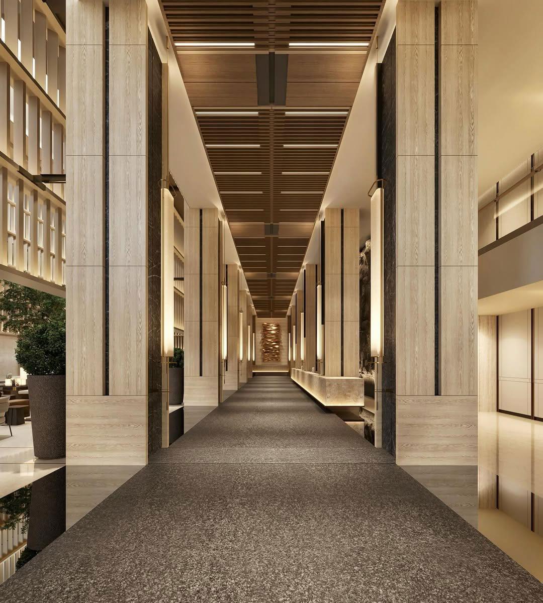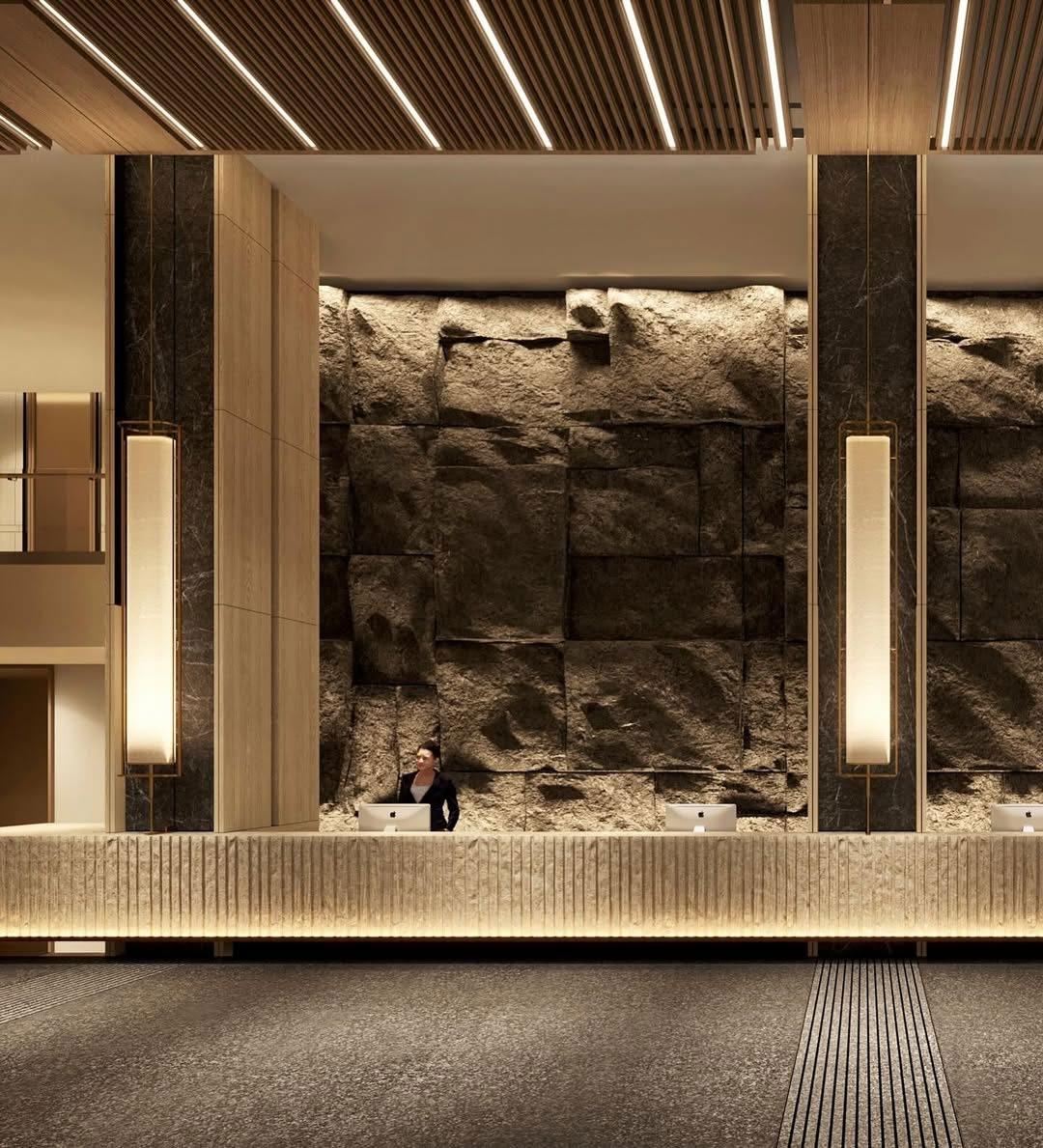 Natural elements provide a warm, comfortable sensation with dominant wood and stone textures.