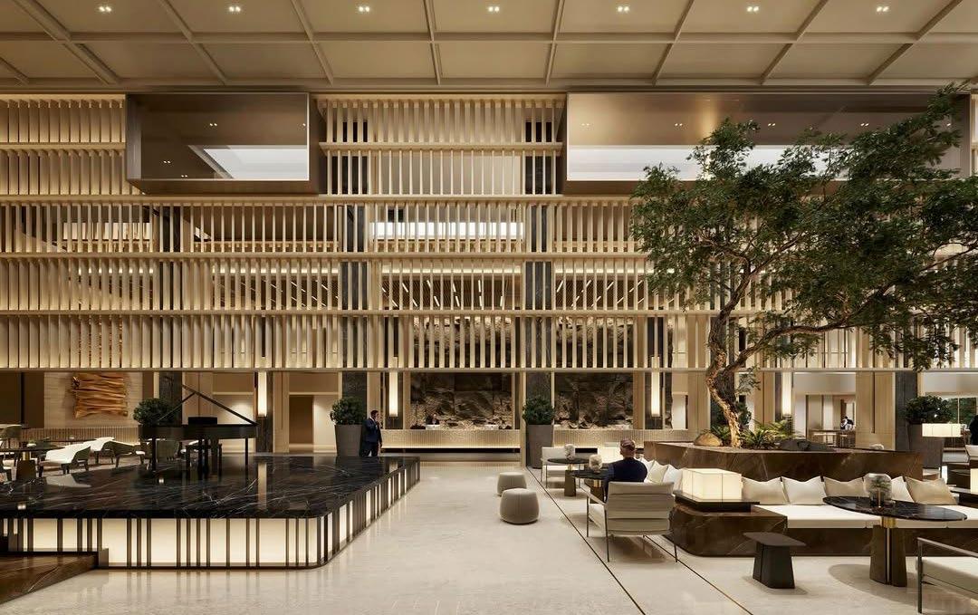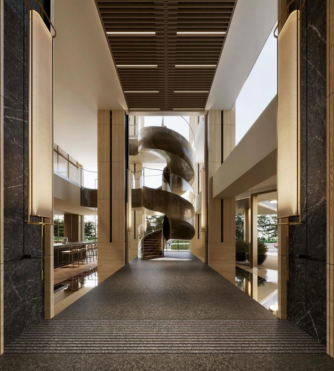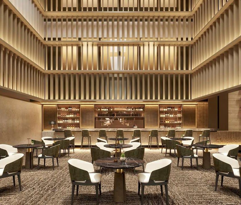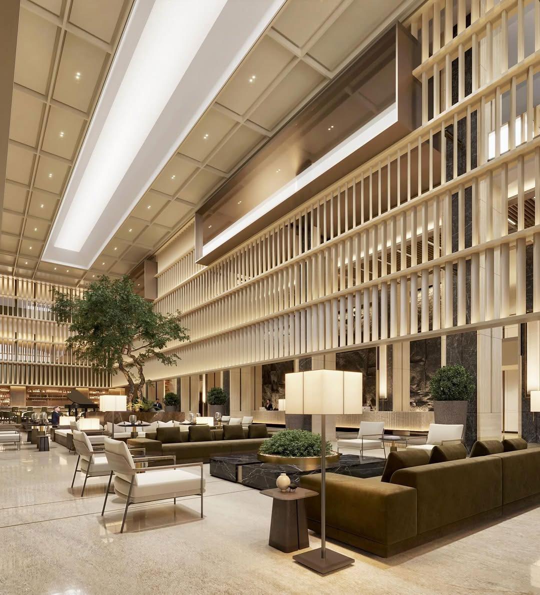 Natural elements provide a warm, comfortable sensation with dominant wood and stone textures.
