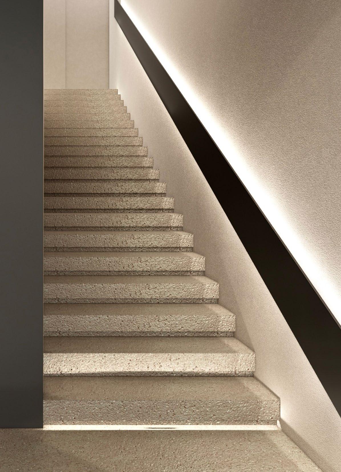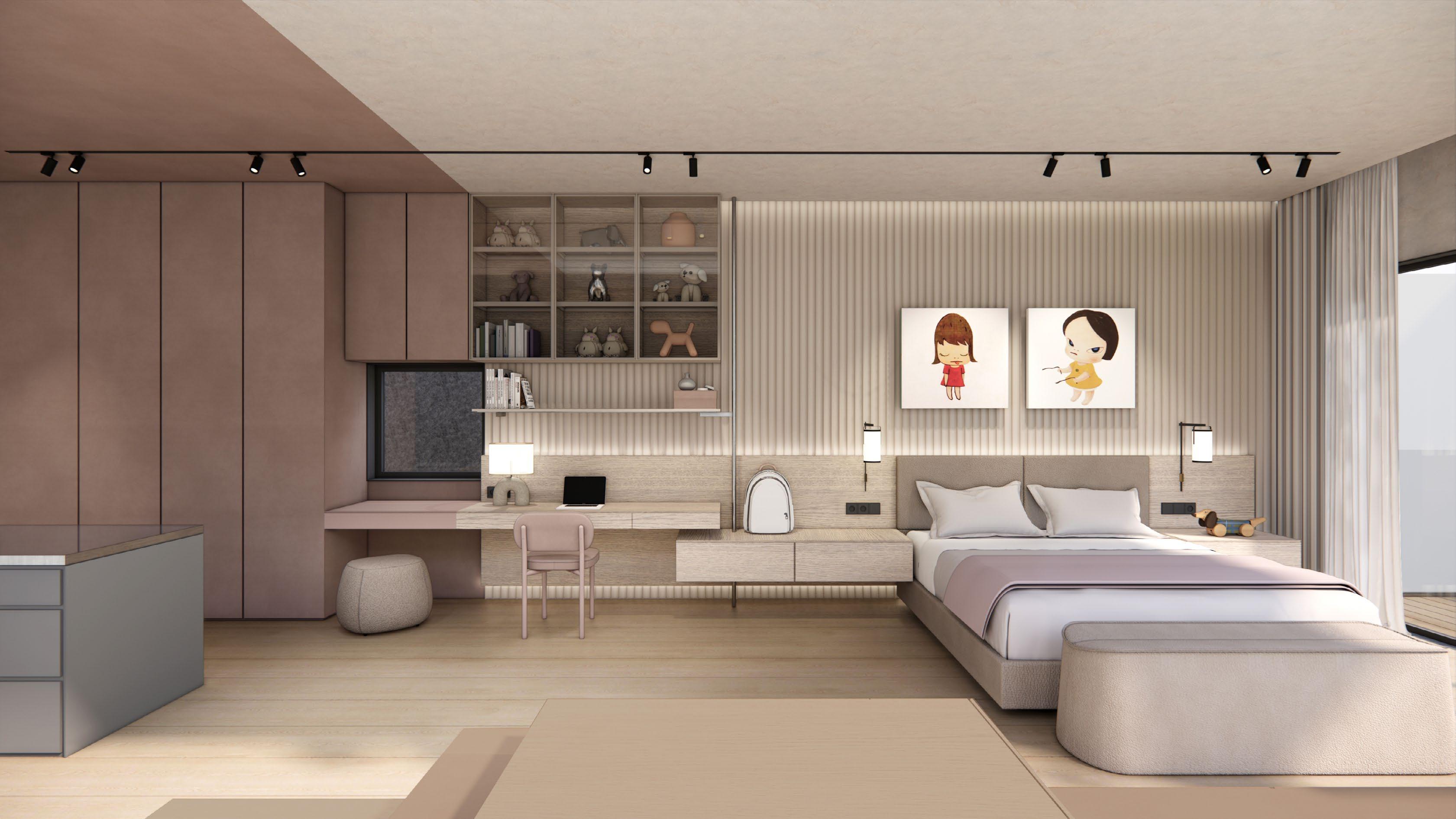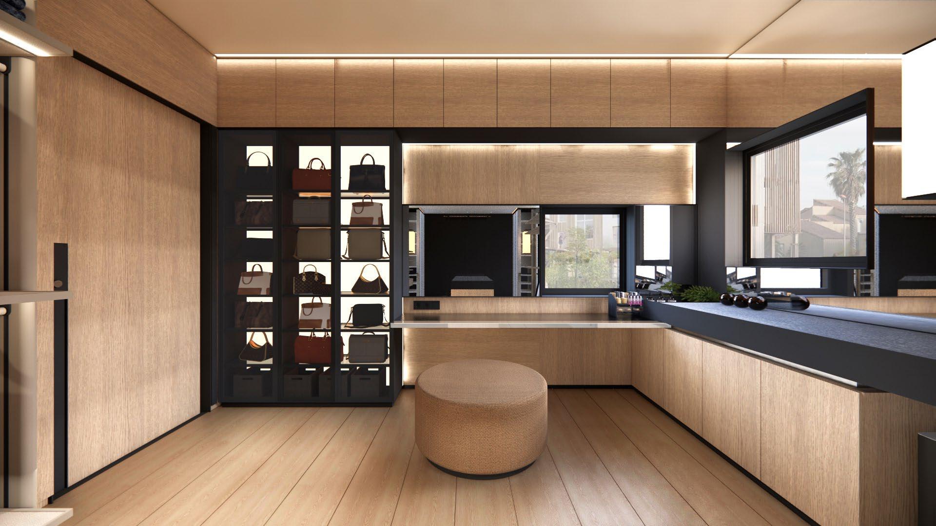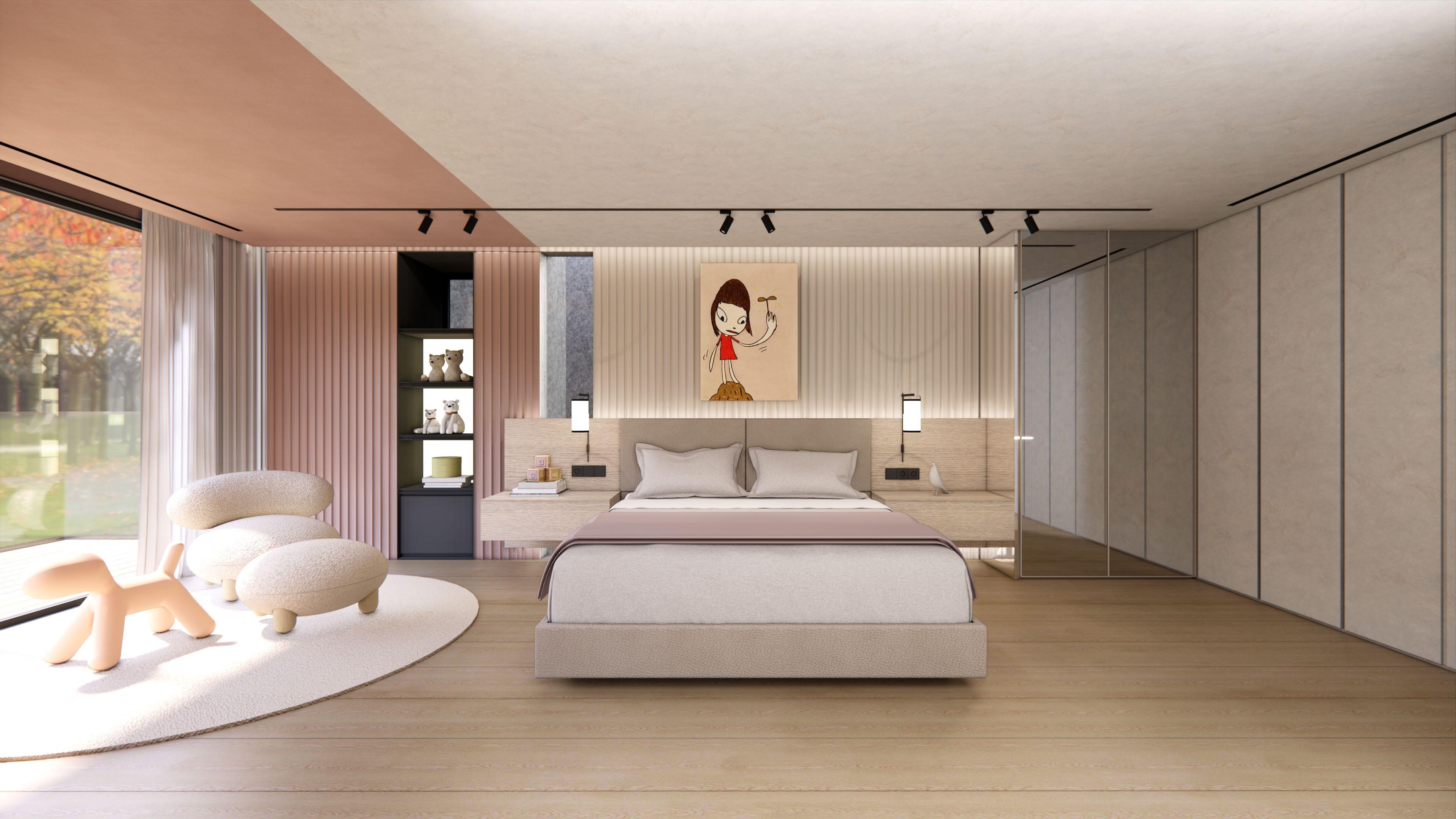 The enjoyment space of the living room is deliberately close to the swimming pool, providing a sensation of water and fun.
