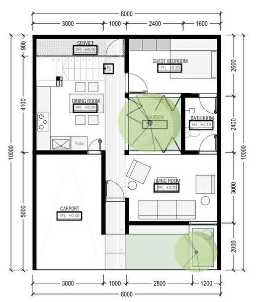 Open Space that consists of living room, dining, and kitchen gives a spacious impression. The simplicity and clean design was emphasized plus natural space of garden as support