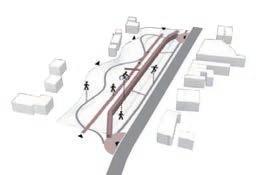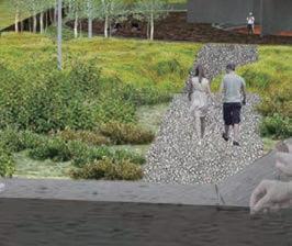 About 50’ below its urban context, this sunken landscape is ignored by even people living next to it. To create more connections to surrounding communities and give people easy access to the Arches, I soften the southern edge of with cut and fill and created several ridges and valleys. The ridges will connect to the previous underutilized parking lots and form entries for communities. The valleys will function as bio-swales and treat runoff from those communities.