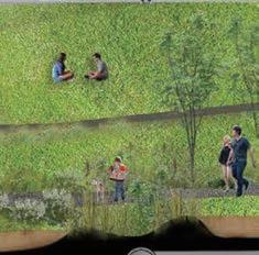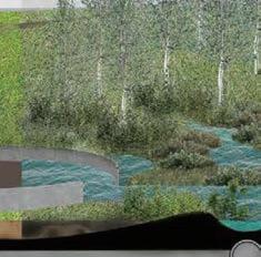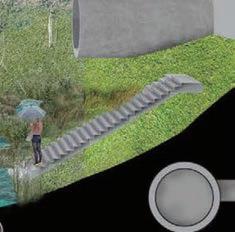 In this proposal, grey and green infrastructures work together to manage storm water. Underground, the old railway tunnels will be connected to the re-oriented storm drain system and become cisterns for runoff. Inside the cisterns, the gross firstflush will get a centralized treatment before getting into the irrigation system. Above ground, the landscape are terraced and planted with different species so as to absorb different pollutants from the water.