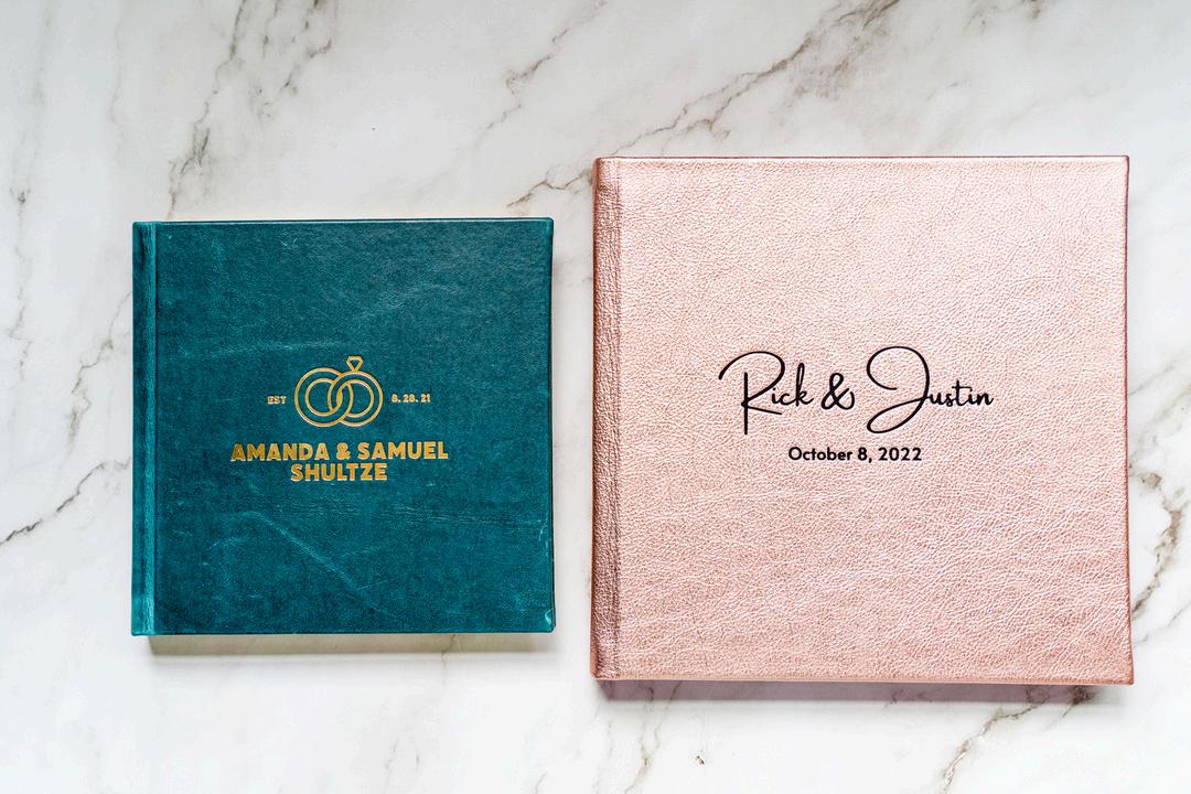 Miller's signature albums come in a wide range of Italian leather, vegan leather, linen, and velvet cover colors The thick photographic pages lay perfectly flat and the print quality of the photos is absolutely stunning. They're designed by me and approved by you. These come in 8x8 or 10x10. If your collection doesn't include an album, you can always purchase one later (yes, even after your gallery is delivered)!
