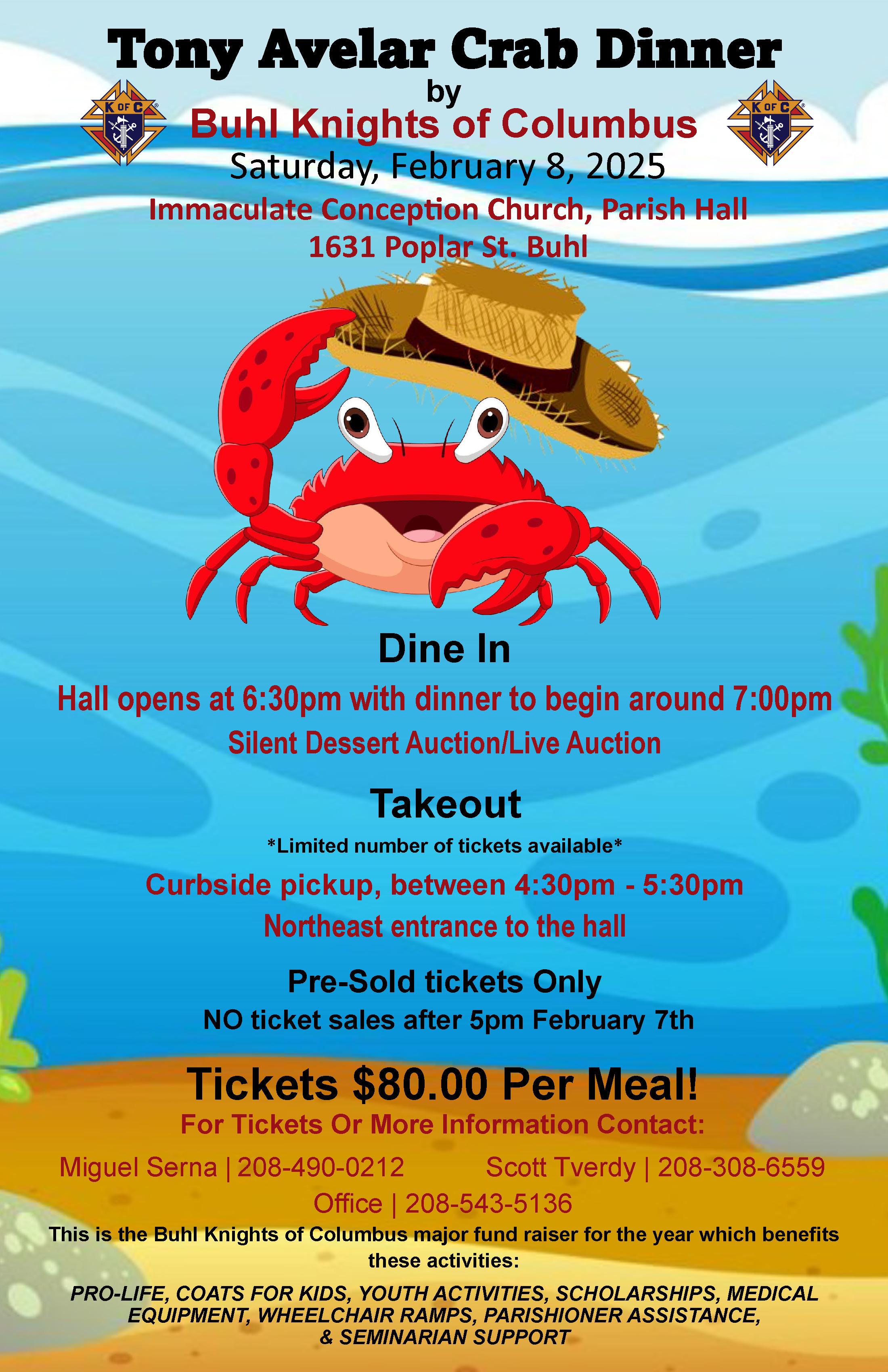Tony Avalar Crab Dinner, 208-490-0212 P1