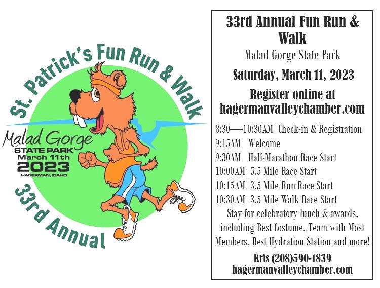 11th 8:30a HAGERMAN Annual Fun Run & Walk. Malad Gorge State Park. 208-590-1839 p3