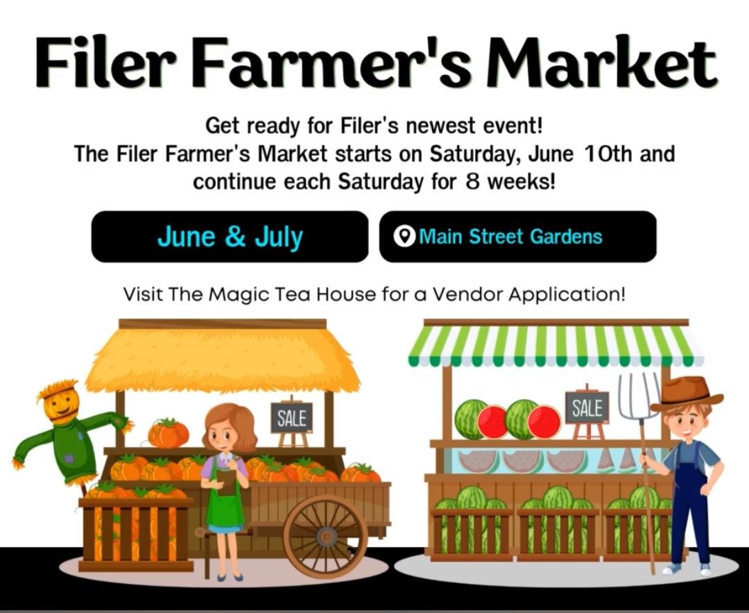 FILER Farmers Market, 523 Main St. June 10-July 29 p35