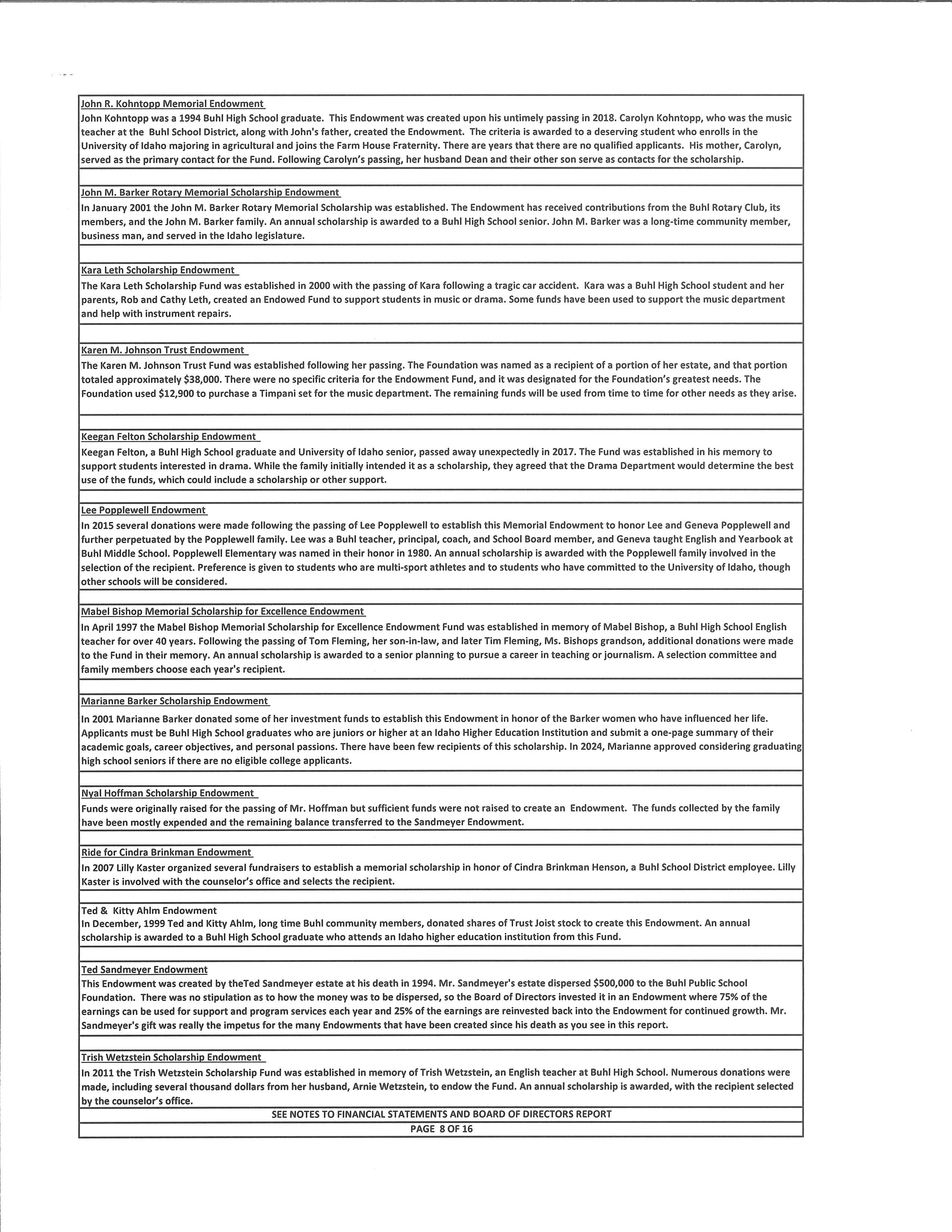 Dear residents of Buhl and the surrounding areas, local attorney Bill Nungester founded the Buhl Public School Foundation in the late 1980s to early 1990s, and it has continued to prosper ever since. The Foundation supports community activities and Buhl Public Schools.