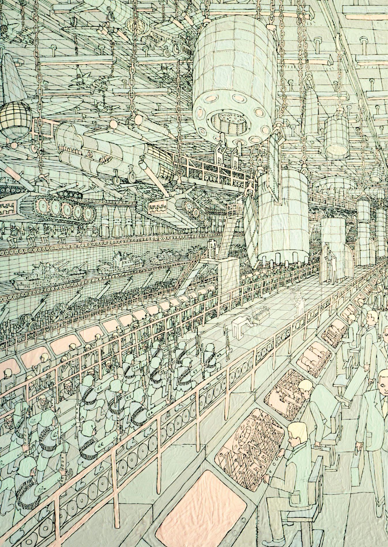 Blant mylderet av figurer i krigsmaleriet Jobkill kan vi se en mann stå på vannski på en kanal av lik, blod og død. Han vifter med en vimpel der det står skrevet «Victory». Kan man tenke seg en mer treffende metafor for industrialismens miljødrap eller våpenindustriens mange makabre seire? Eller et mer skremmende glimt inn i fremtiden? Minner ikke dette om George W. Bushs seierstale fra 1. mai 2003, da sjefen for verdens største militærmakt sto på slagskipet USS Abraham Lincoln i Persiabukta og erklærte Irak-krigen for vunnet? På det enorme banneret bak presidenten sto det «Mission Accomplished». Kanskje ikke så rart at den prisbelønnete krigsreporteren Mark Danner kalte Irak-krigen «The War of the Imagination».33 Her står altså fantasi mot fantasi: Mr. Push mot Mr. Soft. Fantasi og virkelighet glir over i hverandre.