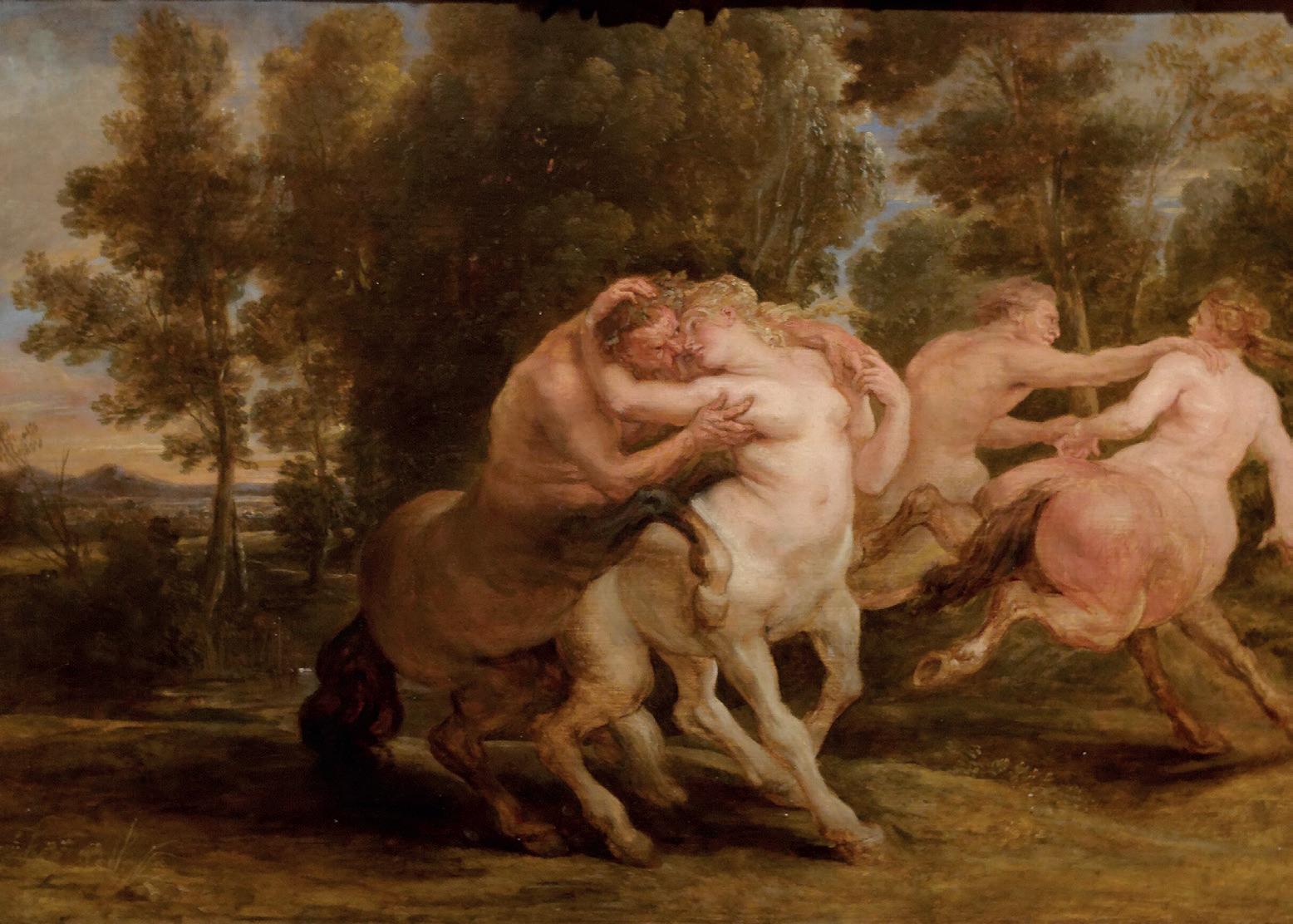 Les centaures trouvent leur origine dans la mythologie grecque où ils naissent de l’union d’Ixion et de Néphélé, nuage façonné à l’image d’Héra. Sauvages et violents, ils incarnent d’abord l’excès du désir, à l’exception du sage Chiron, immortel pédagogue des héros.