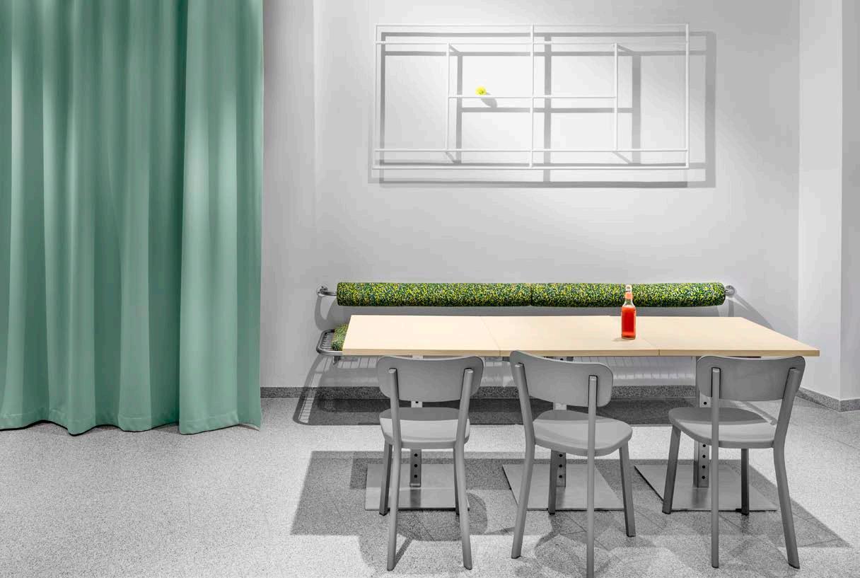 “Simplicity and great love for quality” are the hallmarks of this project designed by Sofie Ladefoged. The Pila chair and Pilo table featuring legs made of natural ash and white HPL table top are characterized by high stability and simple elegance. This ensures high-frequency use by a large flow of people and at the same time meets aesthetic requirements.