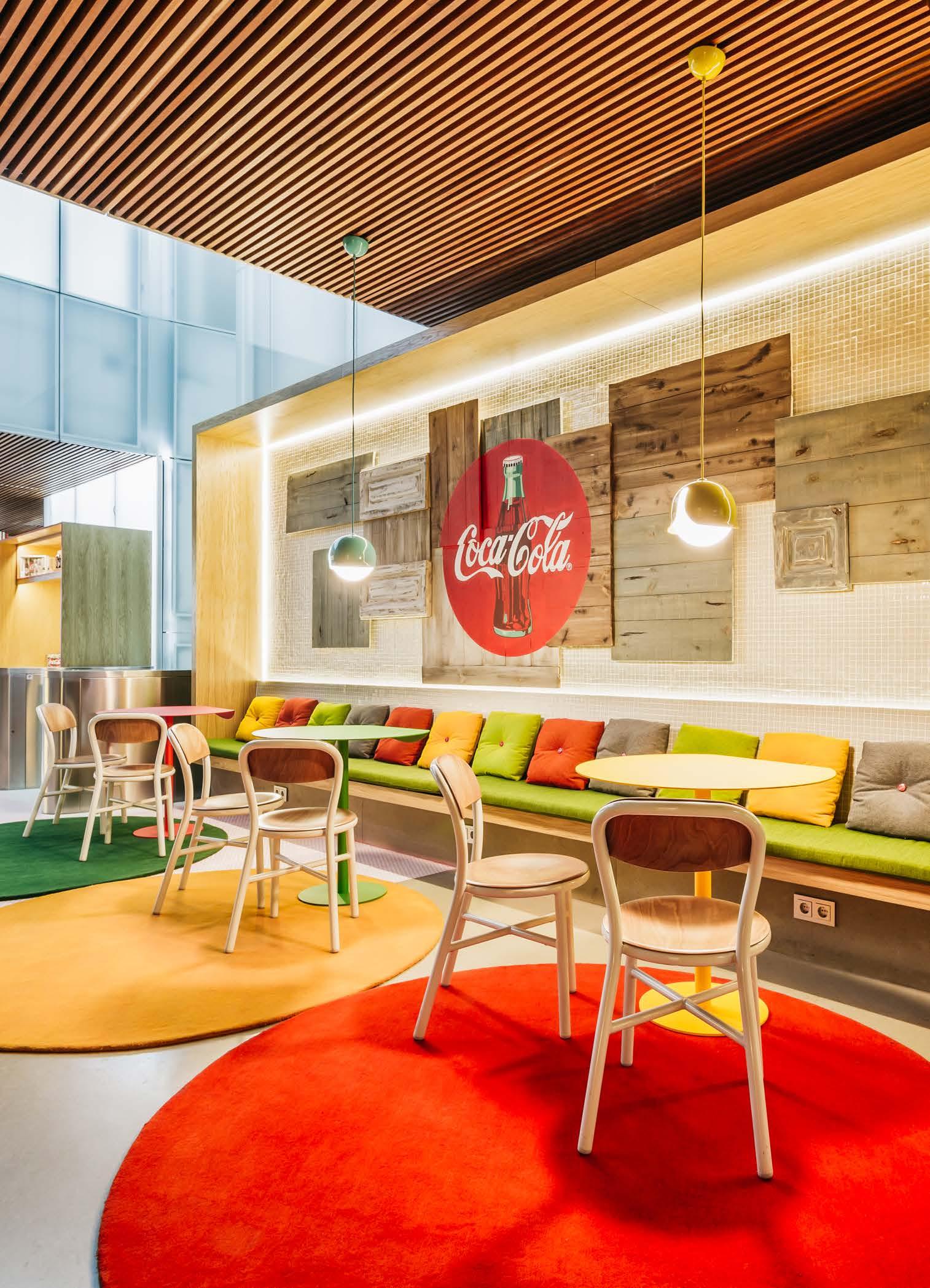 Inside the Coca-Cola HQ in Madrid there are different types of spaces. Materials and light were selected with care: the use of natural wood, mixed with the colours of the upholstery and walls and the red details contribute to subtly capturing all the Company’s values. The space encourages creativity, is cosy and makes users feel at home. Our Pipe chairs and stools complete the familiar atmosphere.