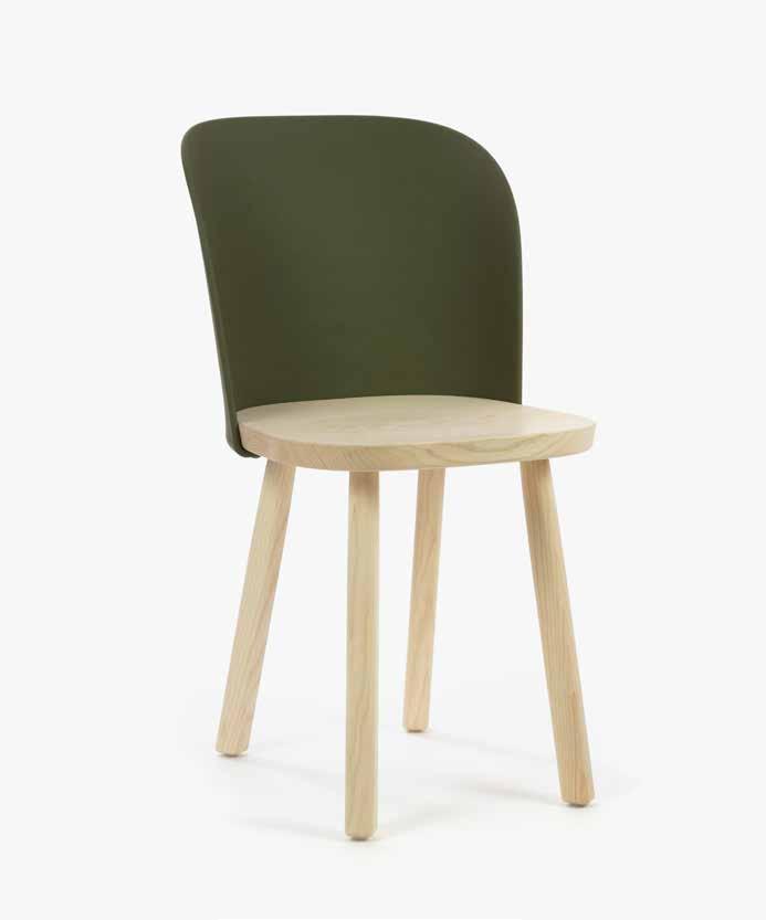 Its archetypal solid wood frame is attached to a highly ergonomic backrest in moulded polypropylene derived from 100% organic oils. This material offers excellent durability, is suitable for both home and contract use, and can be reused at the end of its life. What’s more, its production reduces CO2 emissions by 80%.