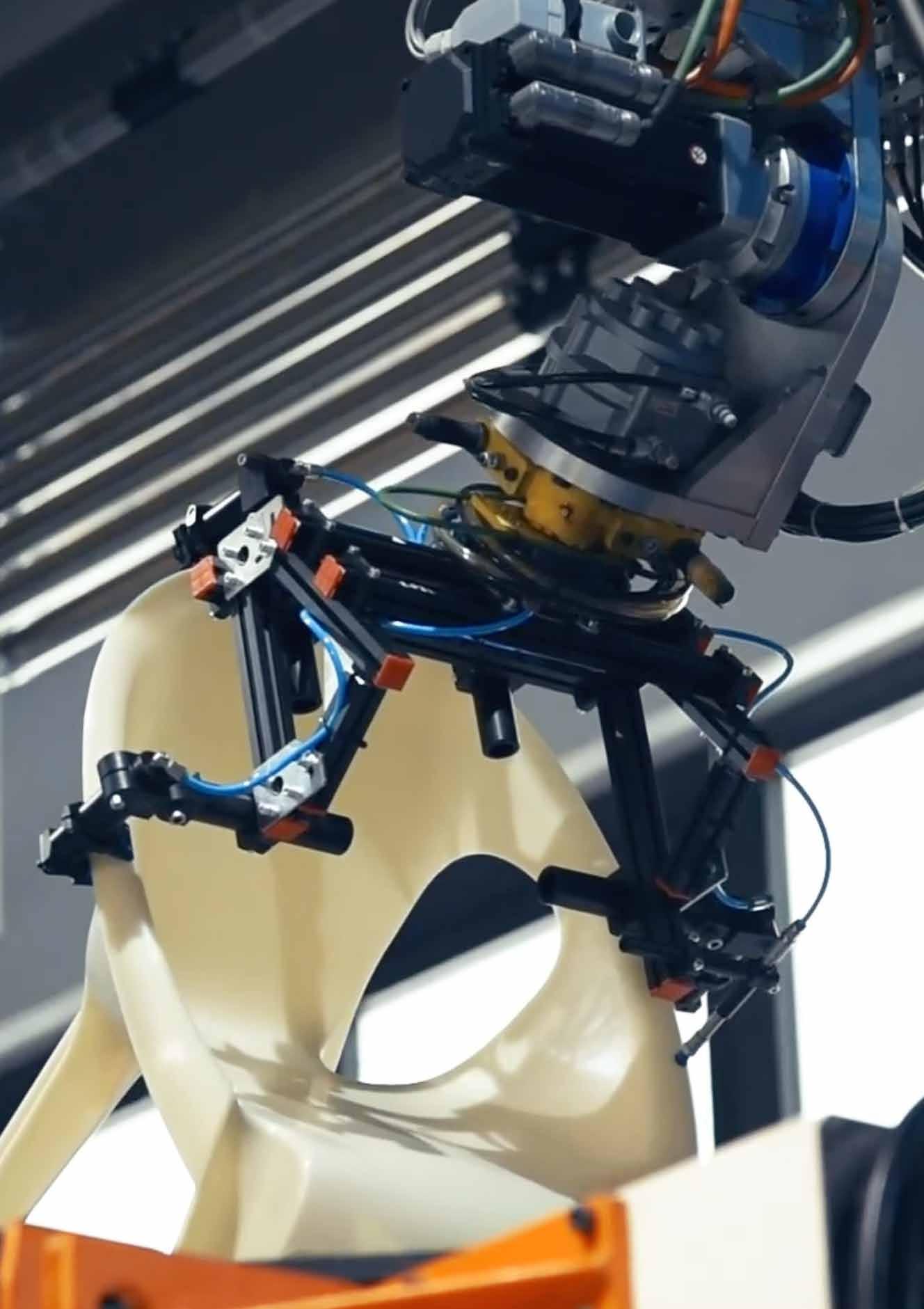 a specially designed reusable pallet made of the same recycled plastic as the chair, with the capacity to contain up to 24 stacked chairs. The result: less packaging material and less space required for transportation.
