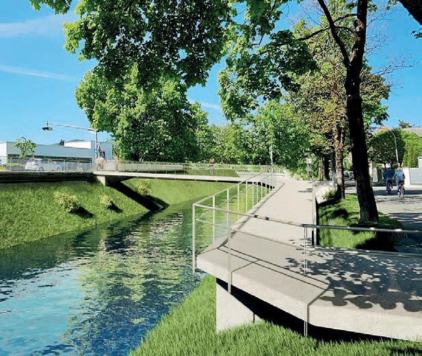 Die neue Brücke über die Lend wird mehr Platz für Fußgänger und Radfahrer bieten und barrierefrei zu überqueren sein. Fertigstellung: Ende Juni 2026. SEITE 13