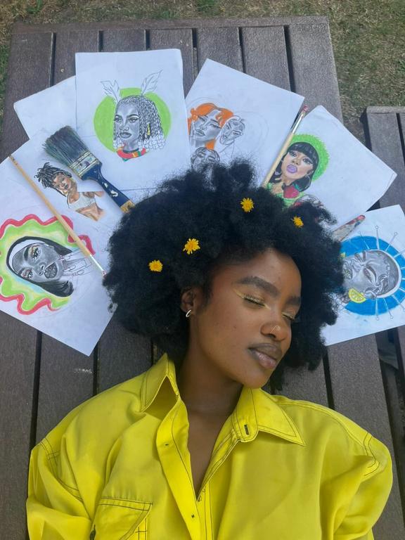 Tostaygroundedandmotivated,Thabisilecarriesapictureofher grandfatherinherwallet,servingasaconstantreminderofher talentandlegacy.Herjourneyintotheartworldbeganinhigh schoolwhenherteacherrecognizedherpotentialandencouraged hertoenteracompetition Herartworkwassubsequentlyfeatured inaprestigiousartmagazine,affirmingherpassionandtalent.