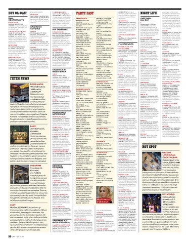 party fast ΠΕΜΠΤΗ 21/11 MAISHA: Put your mask on. ΧΟΡΟΣΤΑΣΙΟΝ: Bass to the stars. KEY BAR: Blue Lagoon. KOMMA BAR: Easy Thursdays. INTERPID FOX: Howling Thursdays. MAGAZE: Andreas Clepas a.k.a. BlueWorks. DRUNK SINATRA: Them nights at Drunk. HOXTON: Kris Riot. DADA: It’s Awkward Thursdays. CLICHÉ: Thirsty Thursdays. SKULLBAR: Thursday Tales of Innosence. TAG BAR: Ejekted Athens «Tagged Up Thursdays». SCHOOL PIZZA BAR: DJ Dr K. CALIENTE : Aris Thomas special guest Ina Lazopoulou. DYBBYK: Cj Jeff. SKYFALL: House Flights Manolaco. SIX D.O.G.S: My Boom Raise The Dead Label Night Blend Mishkin+Bnc+ Mr Soundproof. ΠΑΡΑΣΚΕΥΗ 22/11 KOMMA BAR: Giannis Jovolos. TIKI BAR: Fresh & Yellow. MAGAZE: Andreas Mint. ΤΩΡΑ Κ44: Skins party vol. 2 w/ Kris Riot, March & Postriper. SKULLBAR: Friday rocks. PIXI: BestSeller Fridayz. ΧΑΟΥΖ: Mammy Hot Daddy Cool. SECOND SKIN: Batcave. SCHOOL PIZZA BAR: Harris Gabriel. ZAF: Don Juan. RED SEA REGGAE CLUB: Mammy Hot Daddy Cool. PEACOCK OPENING PARTY: Vanilla Ace + Simons Danalis + Junior Mi+ Mar.P. DABBOUS: Nikos Tsiaras + Nickkal. MAISHA: Full House: George Seragos+ Kumo+LeDeep+ Dimmitri. BAR ΠΑΝΩ ΑΠΌ ΤΟ BIOS: Professional Crap Dancers: Pene & Lucas The 3erd. BIOS: Say Festa Type-O & Mosh Beat, L professor, Syndrome & Junk 33. SIX D.O.G.S: ΒΑR: Gravity Miss Linewood + Konstantine Kalfakakos + K Bolas. SIX D.O.G.S GIG SPACE: Deltalfalamda: Ion Ludwing + W/Mr Roussos+ Tony Lasae+ Jose Amba+ Klaap. ΣΑΒΒΑΤΟ 23/11 7SINS: Insom, Postriper, Yaz, MNDL.. MAGAZE: Andreas Clepas a.k.a. BlueWorks. KOMMA BAR: Les Girlz. HOXTON: Monachus presents the chronicles. RED SEA: From roots to Dancehall: music selector rankin Johhny. SKULLBAR: After Hours w/ Mikele & Friends. BLOW: Get Down.