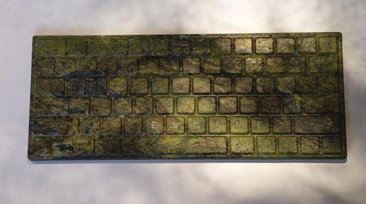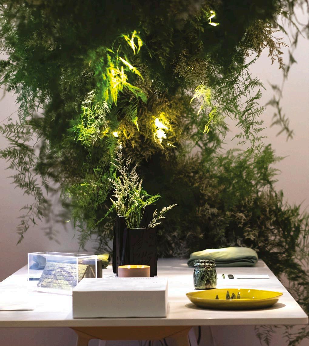 μετά από μια κουραστική μέρα, το Forest Plate που φτιάχνει η Δάφνη Λέων, το οποίο δημιουργήθηκε αποκλειστικά για τη συλλογή αυτή, το βάζο Miss Marble-Alpi της Editions Milano αλλά και το μαρμάρινο πληκτρολόγιο Escape που, με τον τρόπο του, μας κάνει να αναρωτηθούμε τι πραγματικά σημαίνει απόδραση για εμάς, είναι μόνο μερικά από τα έργα που συναντήσαμε. Από πάνω τους μια σύνθεση Limonium και ασπάραγκου μήκους εννέα μέτρων, η οποία «γεννήθηκε» σε συνεργασία με την Kopria. «Ήταν σαν déjà vu» είπε ο Κωνσταντίνος