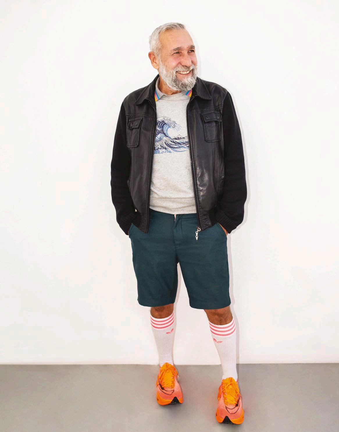 είναι μορφή κεραυνοβόλου έρωτα. Τι έχεις στις τσέπες σου; Τις κάρτες μου και τα κλειδιά μου, και –προς θλίψη μου–τα τσιγάρα μου. Τι φοράς και πόσο κοστίζει; Leather jacket Dior X Heidi Slimane (€3.800), παπούτσια Nike (€300), κάλτσες Adidas, Sweater Uniqlo