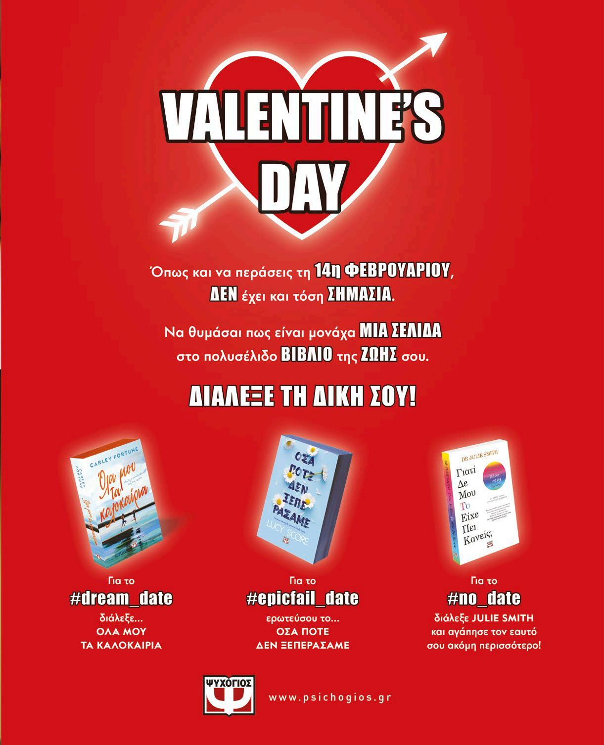 Είτε λατρεύεις τη 14η Φλεβάρη και κανόνισες το ιδανικό ρομαντικό ραντεβού, είτε είσαι χωρισμένος και περιμένεις υπομονετικά να περάσει η μέρα, είτε ο Άγιος Βαλεντίνος σού περνά αδιάφορος, έχουμε τα ιδανικά βιβλία για σένα.