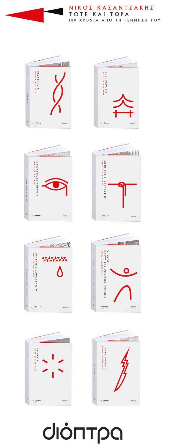 μια σειρά από βαθυκόκκινες καλαίσθητες αφίσες που φέρουν στην καρ-