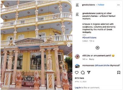 5. Το νεοελληνικό κιτς. Μια κλασική ελληνική πολυκατοικία στο Αιγάλεω διακοσμημένη με γλυπτά, κολόνες και μοτίβα από την αρχαία ελληνική ιστορία.