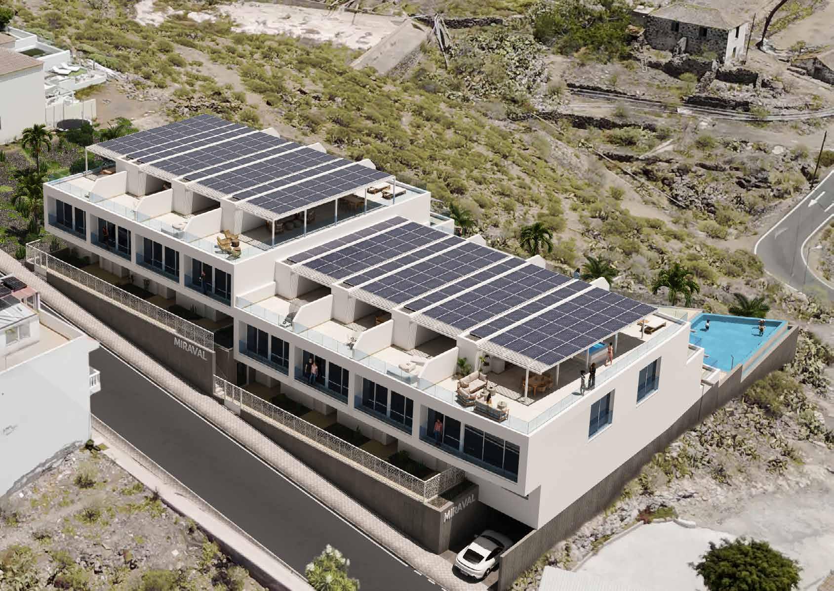 We are pleased to announce the promotion of Miraval, a 100% sustainable building, designed to make the most of the abundant sunlight in the Canary Islands. At Miraval, every detail has been carefully thought out to offer a lifestyle that combines luxury, tranquility, comfort, safety, and ecological responsibility. The homes at Miraval stand out for their spaciousness, south-facing orientation that maximizes natural light, and stunning front views of the coast and the Atlantic Ocean. We have collaborated with the best construction specialists on the island to develop this project, using top-quality materials to ensure impeccable finishes, thanks to our expert craftsmen.