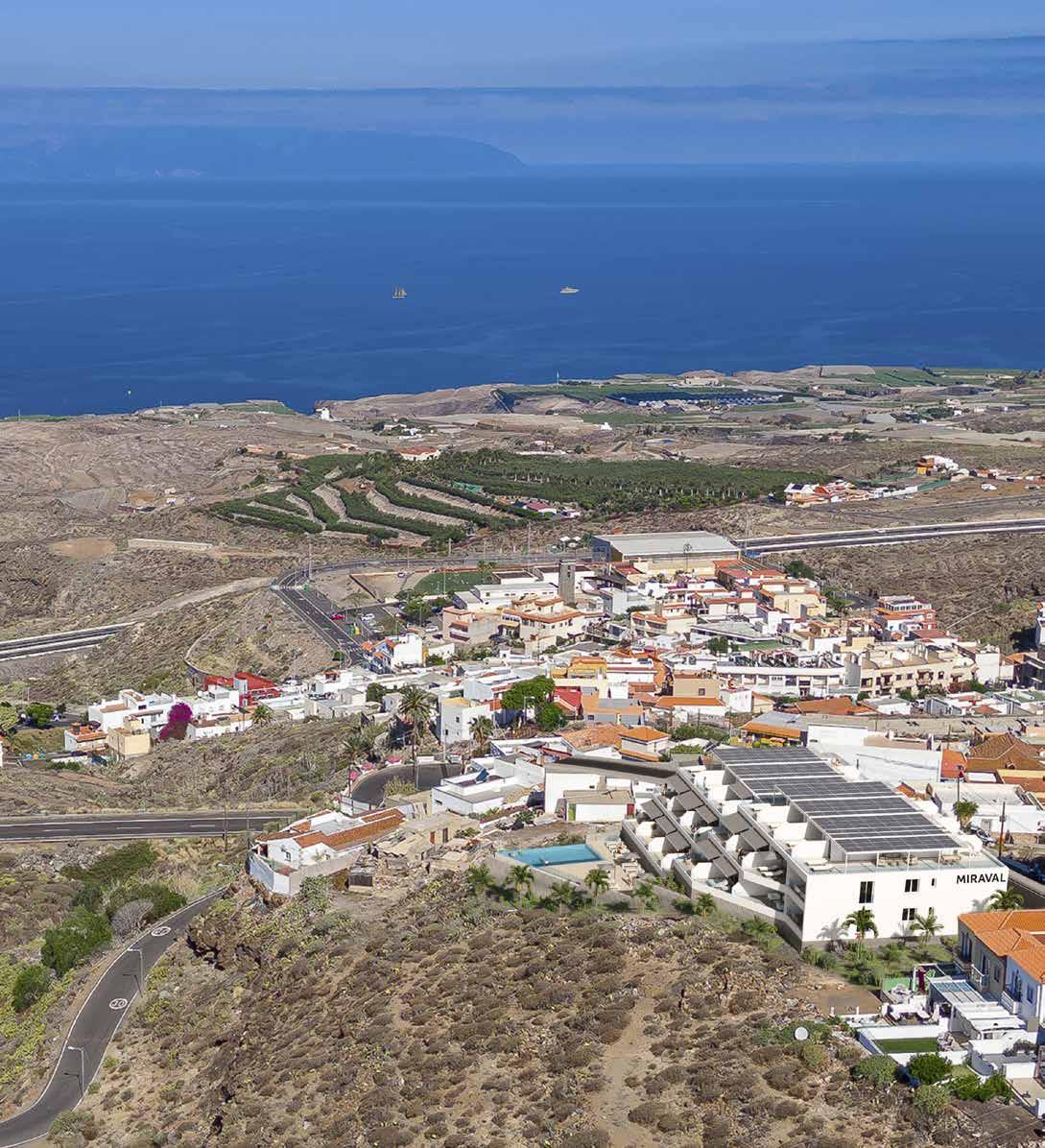 Tijoco Bajo, on the other hand, is a very peaceful residential area of Adeje. It is just 20 minutes from the South Airport, 3000 meters from the ocean in a straight line, and at an altitude of 400 meters above sea level, offering stunning views of the coast.