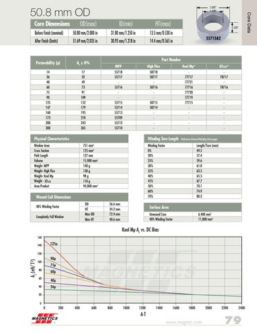 Length/Turn (mm) 49.5 57.4 59.6 61.0 63.5 65.5 67.7 70.1 74.9 80.3