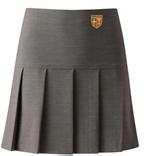 Grey knee-length skirt with school logo or black full length trousers (no leggings or skinny/tight fitting alternatives)