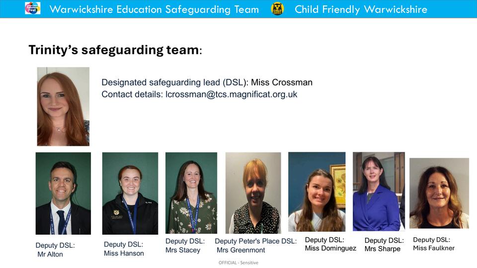 At Trinity Catholic School the health, safety and well-being of every child is our top priority. We expect all staff, governors and volunteers to share this commitment to safeguarding our pupils