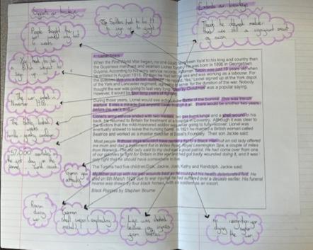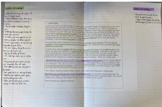 This week they used an extract from Stephen Bourne’s Black Poppies about the First World War experiences of local soldier Lionel Turpin Our classroom book displays have also been updated for Black History month.