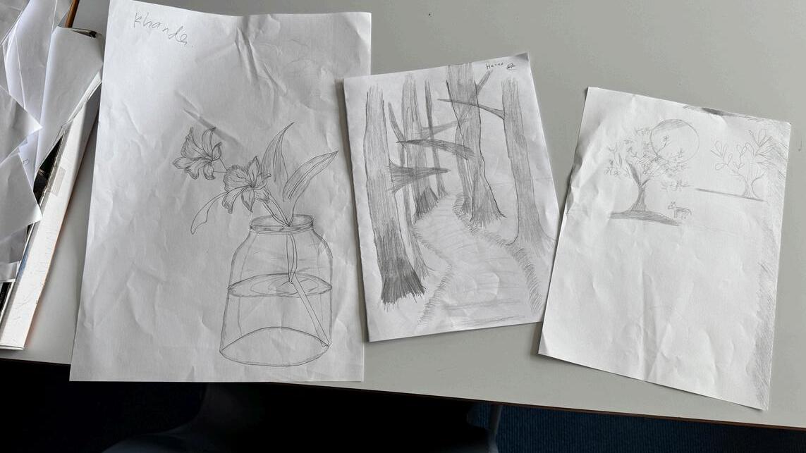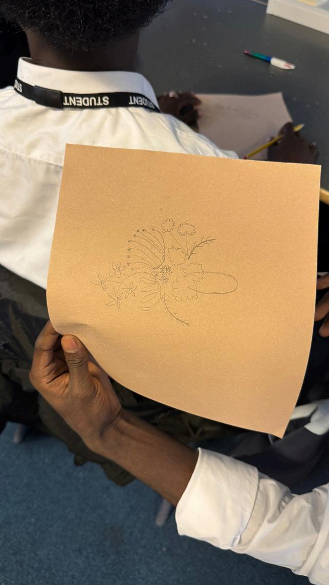Today,theytookinspirationfrom HenriRousseau’sFlowersina Vasetoproducetheirownfloral drawings