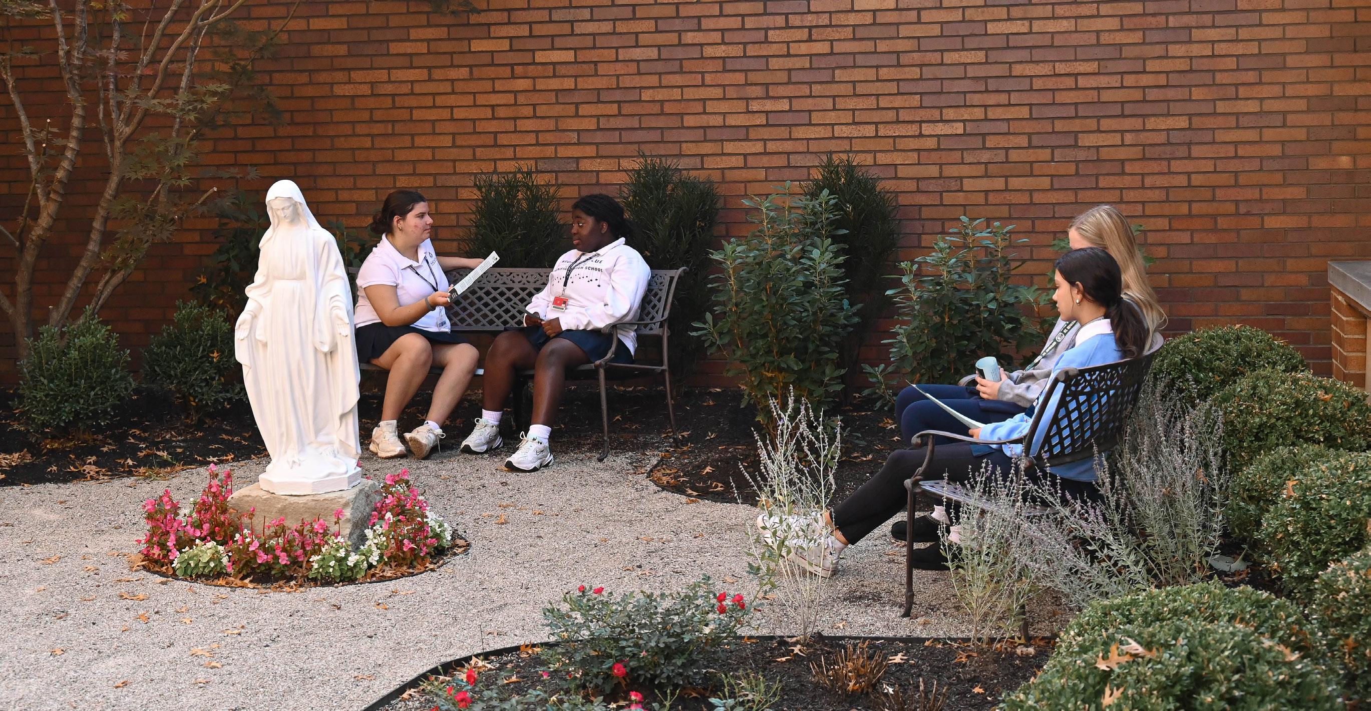 Six Magnificat students have been recognized by the National Merit Scholarship Program for their exceptional performance on the PSAT last year. Angela D’Souza ’26 (pictured above, far right) achieved Semifinalist standing, placing her among the top 1% of test takers in Ohio. Mikaela Davala ’26, Maeve Lavelle ’26, Allyson Liller ’26, Megan Martin ’26, and Maggie Steen ’26, (pictured above, from left) were named Commended Scholars, placing them among the top 5% of test takers. This recognition makes students stand out during the college application process, and the Semifinalists qualify to compete for scholarships to offset the cost of college tuition.