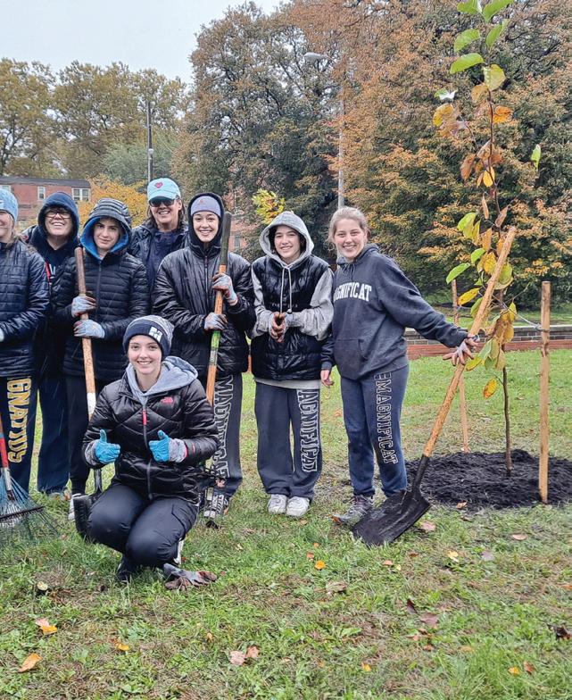 On a rainy Tuesday morning in October, the Seeds of Service Horticulture Club drove with moderators Karen Duffy Morley ’78 and Karen Ryan Tigue ’85 to the Central neighborhood of Cleveland to plant trees in a public housing development. They were met by an urban community forester from Holden Forests & Gardens, and by mid-day they had planted 20 saplings in an under-resourced area of the city to increase the urban canopy. The field trip was rooted in Eva Miller ’23 ’s Agape Experiment, exploring environmental and racial inequity in combination with service learning and Catholic Social Teaching.