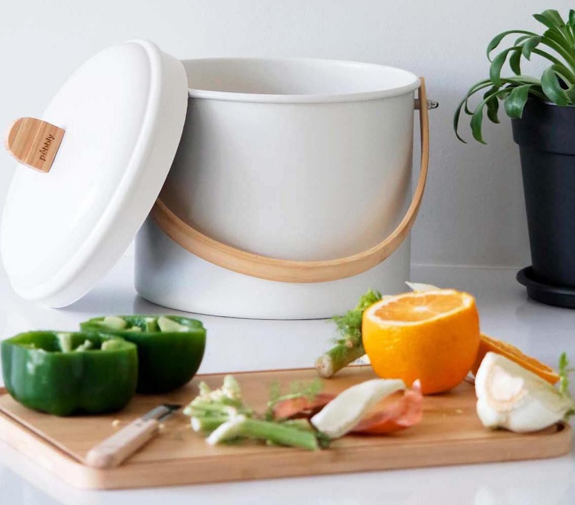 Den stilige versjonen av kompostbøtta har kommet! Oppdag den innvendige stålkompostbøtten med bambushåndtak for enkel transport til komposteren.