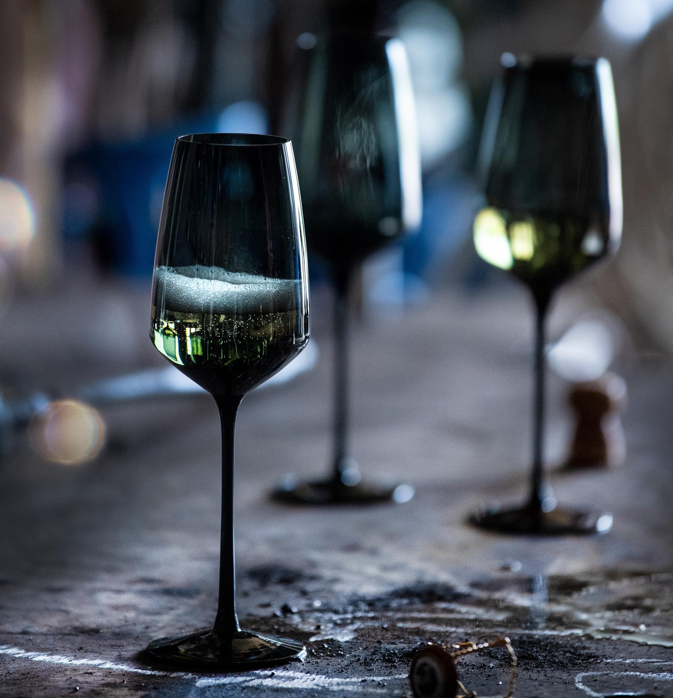 Serien er håndlaget i ekte krystall med håndslipt fasettmønster i koksgrå lysterfarge. Formspråket er elegant med stram fasettslipt dekor som gir en følelse av luksus. Produktene er like fine alene som i grupper, de skaper alltid et sofistikert og stilig interiør.