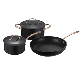 Gryteserien med tidsriktig design og elegant utførelse i gun metal, en farge hvor svart og grå blandes sammen til et eksklusivt uttrykk. Produsert i rustfritt 18/8stål med børstet overflate. Tåler både oppvaskmaskin og stekeovn opp til 270 °C. Bunnen har en støpt aluminiums-kjerne på 3mm, noe som sikrer en jevnere oppvarming med mindre bruk av energi. Veggene er 0,3mm tykke. Kan selvsagt brukes på alle platetopper, og håndtakene er varmeisolert slik man kan flytte gryten uten beskyttelse. En kan bruke alle typer redskaper.