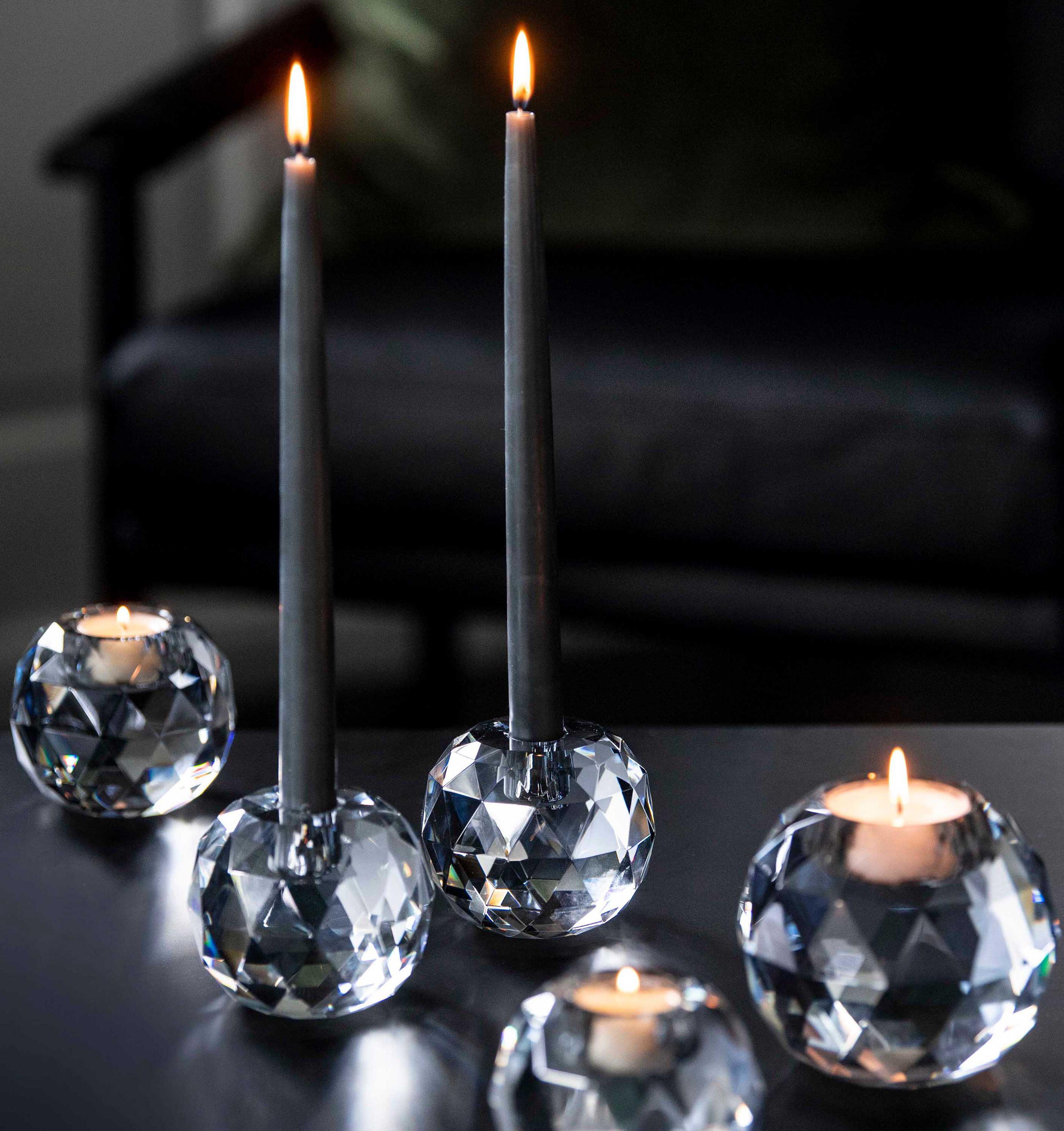 VERA er glamorøse og fasettslipte telykter og lysestake, designet av interiørdesigneren Halvor Bakke.