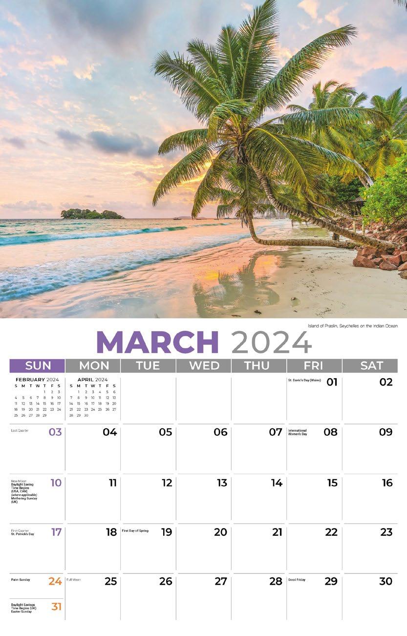 INCLUDED IN PRICE OF CALENDAR YOUR CHOICE OF 4 STANDARD COLOURS IMPRINT STANDARD ONE COLOUR BLACK REFLEX BLUE RED (185) GREEN (342) • 1 Colour Set-up – $35 (c) Imprint Area 1¼” x 10” • Full Colour Set-up - $35 (c) Imprint Area 1¼” x 10” Imprint Area 1⅝” x 10 ⅞” (bleed on bottom & sides) • Open Size 10 ⅝” x 18 ½” • Closed Size 10 ⅝” x 10” • Weight 22 lbs. per 100. Mix & Match Titles Minimum 50/Title www.GalleriaCalendars.com MATRIX TIRE CENTRE 1237 DUNWOODY AVENUE, DULUTH, GEORGIA 770-555-9854 16 YOUR COMPANY’S NAME PERSONAL MESSAGE SPACE! 123 ADDRESS, YOUR TOWN/CITY, ST 12345 (PH) 555.555.5555 • EMAIL@ADDRESS.COM • WWW.YOURWEBSITE.COM WORLD TRAVEL 2024-0064