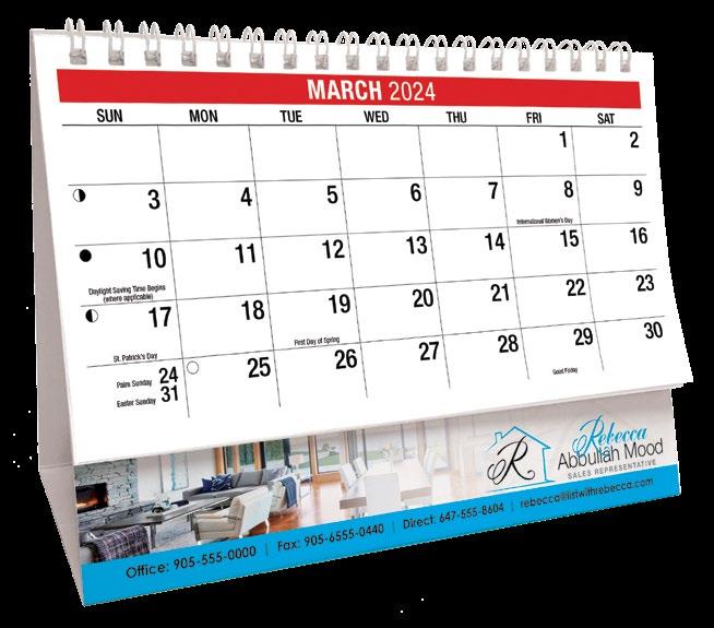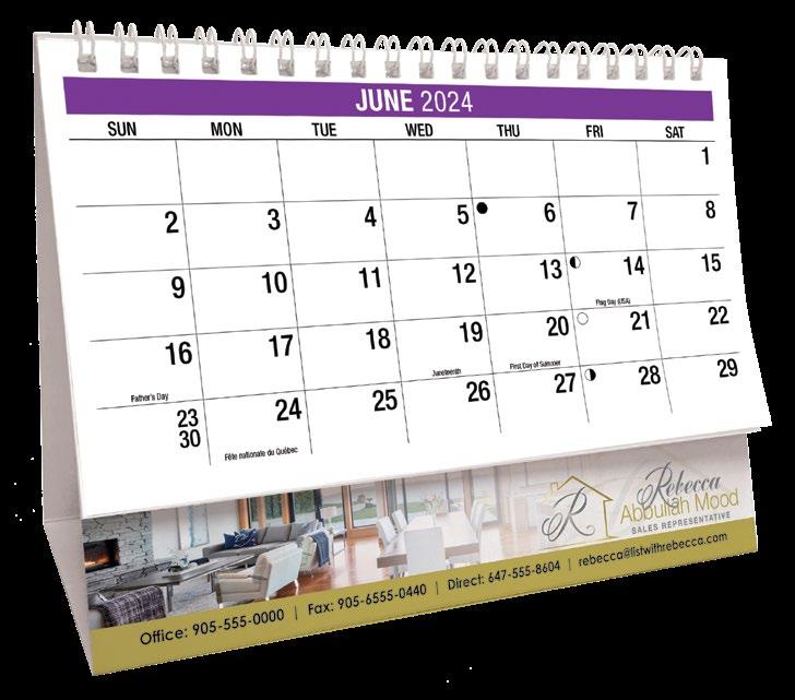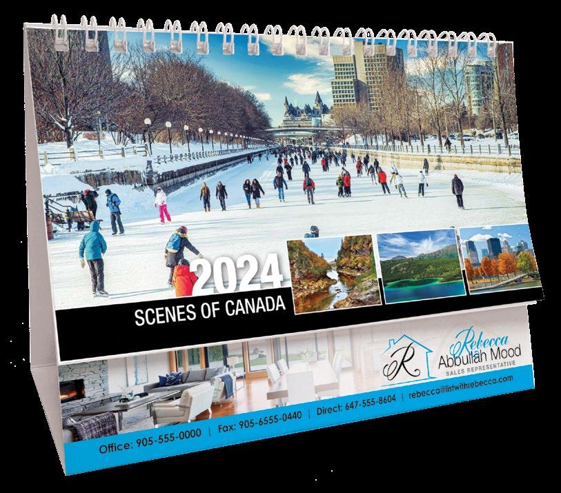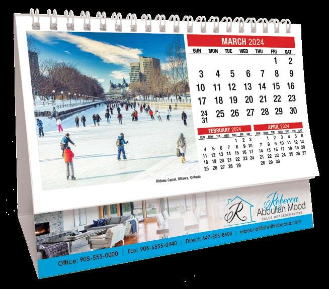 50 SCENES OF CANADA (Also available in French/English) MOTIVATION DesK caleNDars 2024 PRICING 150 500 1000 (3C) $1.90 (EA) $1.80 (EA) $1.69 (EA) ■ SET-UP CHARGE $35(c) ■ IMPRINT COLOUR: BLACK ■ MAILING ENVELOPES: 25¢ (E) EA ■ SIZE: 6¾" x 5" ■ ADDITIONAL COLOUR ■ CALENDAR WEIGHT: 150LB/15 ■ IMPRINT AREA: 5¾” x 15/16 ” 35¢(C) running charge ■ FREE PROOF OF IMPRINT 2024 DSK-0047 (Eng.) 2024 DSK-0046 (Bilingual) 2024 DSK-0056