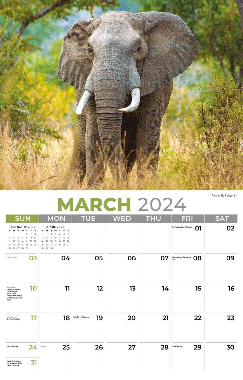 INCLUDED IN PRICE OF CALENDAR YOUR CHOICE OF 4 STANDARD COLOURS IMPRINT STANDARD ONE COLOUR BLACK REFLEX BLUE RED (185) GREEN (342) • 1 Colour Set-up – $35 (c) Imprint Area 1¼” x 10” • Full Colour Set-up - $35 (c) Imprint Area 1¼” x 10” Imprint Area 1⅝” x 10 ⅞” (bleed on bottom & sides) • Open Size 10 ⅝” x 18 ½” • Closed Size 10 ⅝” x 10” • Weight 22 lbs. per 100. Mix & Match Titles Minimum 50/Title www.GalleriaCalendars.com MATRIX TIRE CENTRE 1237 DUNWOODY AVENUE, DULUTH, GEORGIA 770-555-9854 32 YOUR COMPANY’S NAME PERSONAL MESSAGE SPACE! 123 ADDRESS, YOUR TOWN/CITY, ST 12345 (PH) 555.555.5555 • EMAIL@ADDRESS.COM • WWW.YOURWEBSITE.COM INTERNATIONAL WILDLIFE 2024-0227