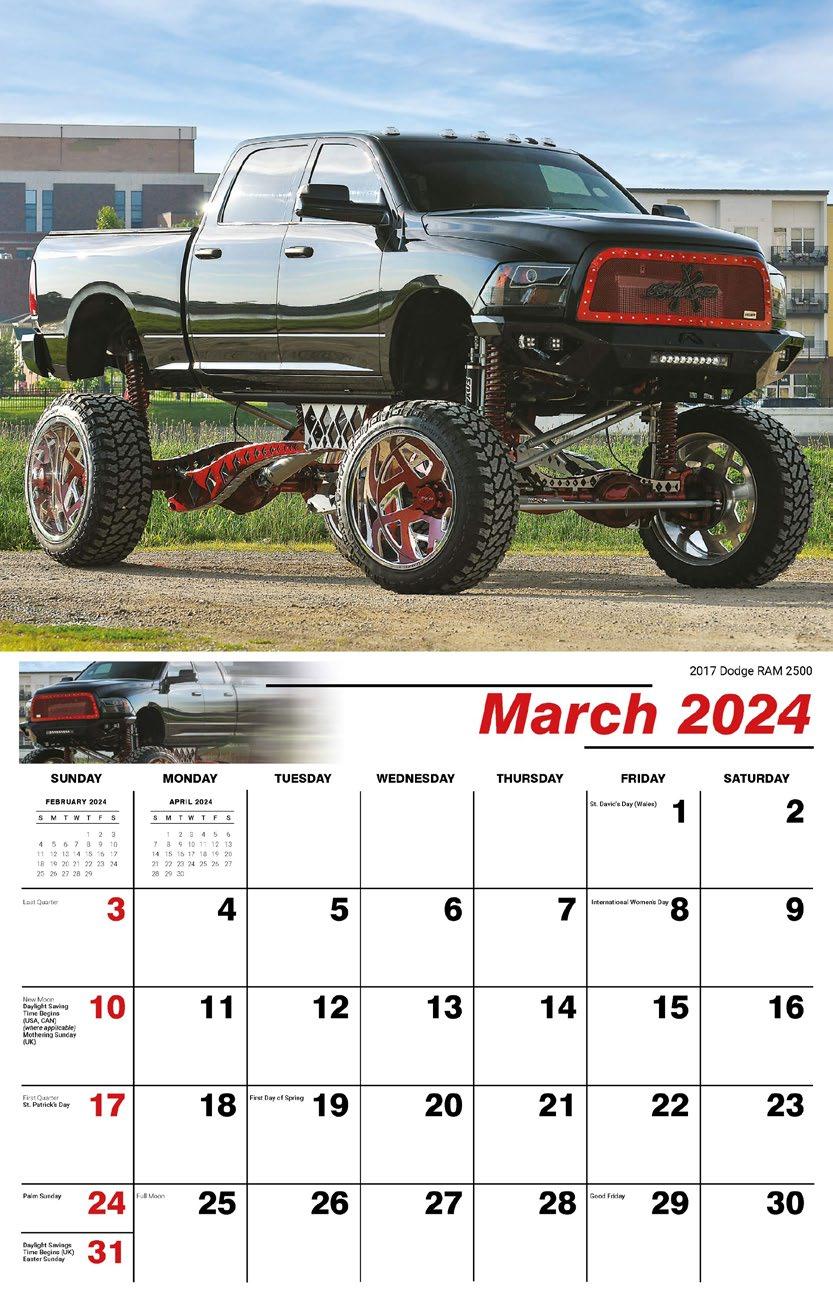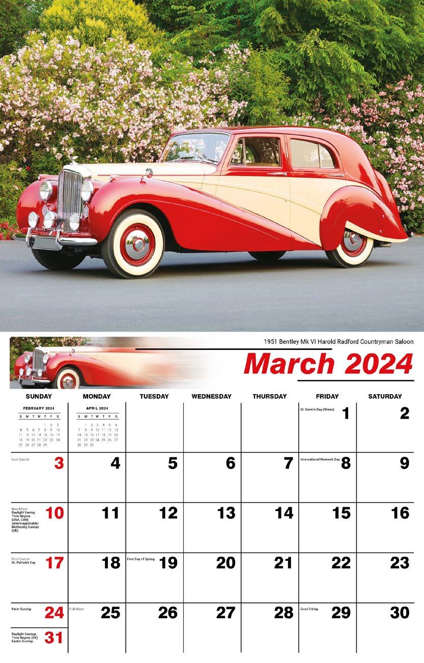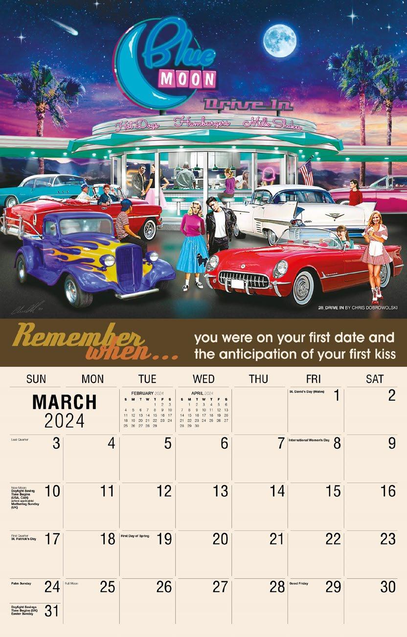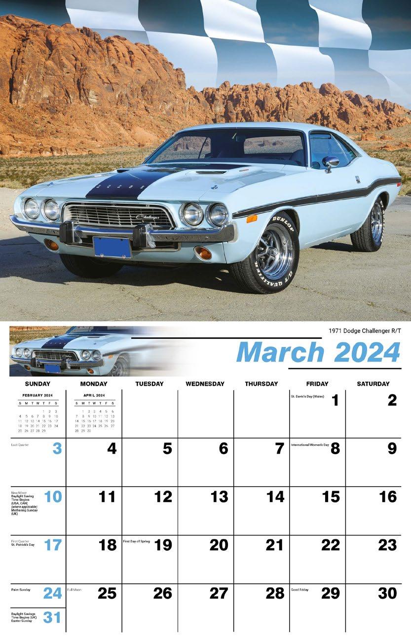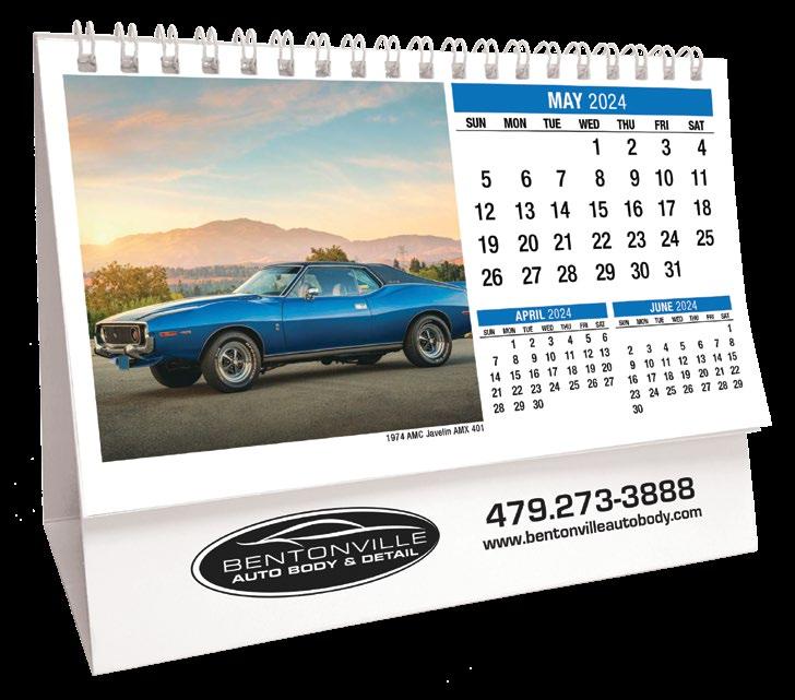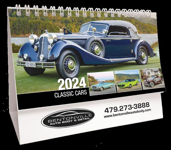 INCLUDED IN PRICE OF CALENDAR YOUR CHOICE OF 4 STANDARD COLOURS IMPRINT STANDARD ONE COLOUR BLACK REFLEX BLUE RED (185) GREEN (342) • 1 Colour Set-up – $35 (c) Imprint Area 1¼” x 10” • Full Colour Set-up - $35 (c) Imprint Area 1¼” x 10” Imprint Area 1⅝” x 10 ⅞” (bleed on bottom & sides) • Open Size 10 ⅝” x 18 ½” • Closed Size 10 ⅝” x 10” • Weight 22 lbs. per 100. Mix & Match Titles Minimum 50/Title www.GalleriaCalendars.com MATRIX TIRE CENTRE 1237 DUNWOODY AVENUE, DULUTH, GEORGIA 770-555-9854 36 CLASSIC CARS 2024-0048 YOUR COMPANY’S NAME PERSONAL MESSAGE SPACE! 123 ADDRESS, YOUR TOWN/CITY, ST 12345 (PH) 555.555.5555 • EMAIL@ADDRESS.COM • WWW.YOURWEBSITE.COM