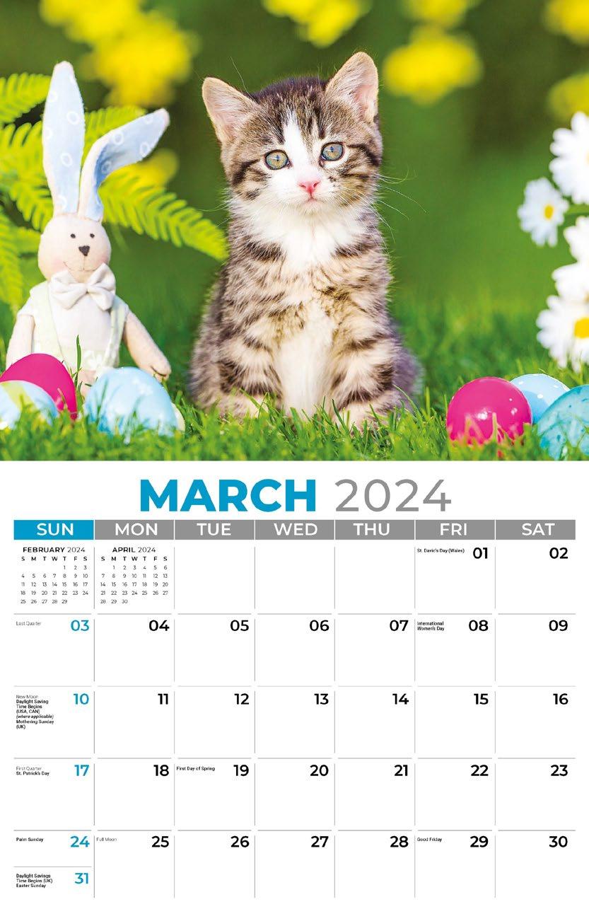 INCLUDED IN PRICE OF CALENDAR YOUR CHOICE OF 4 STANDARD COLOURS IMPRINT STANDARD ONE COLOUR BLACK REFLEX BLUE RED (185) GREEN (342) • 1 Colour Set-up – $35 (c) Imprint Area 1¼” x 10” • Full Colour Set-up - $35 (c) Imprint Area 1¼” x 10” Imprint Area 1⅝” x 10 ⅞” (bleed on bottom & sides) • Open Size 10 ⅝” x 18 ½” • Closed Size 10 ⅝” x 10” • Weight 22 lbs. per 100. Mix & Match Titles Minimum 50/Title www.GalleriaCalendars.com MATRIX TIRE CENTRE 1237 DUNWOODY AVENUE, DULUTH, GEORGIA 770-555-9854 28 KITTENS 2024-0186 YOUR COMPANY’S NAME PERSONAL MESSAGE SPACE! 123 ADDRESS, YOUR TOWN/CITY, ST 12345 (PH) 555.555.5555 • EMAIL@ADDRESS.COM • WWW.YOURWEBSITE.COM