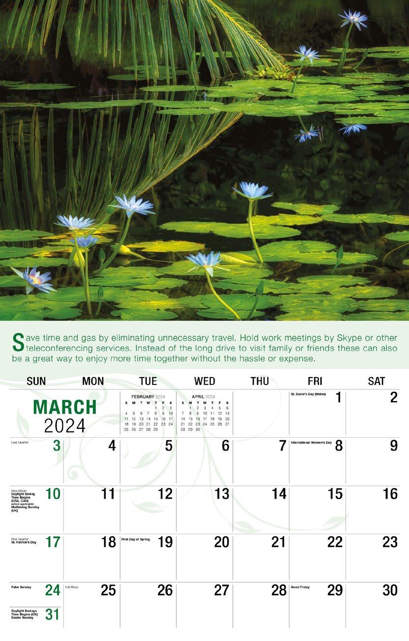 INCLUDED IN PRICE OF CALENDAR YOUR CHOICE OF 4 STANDARD COLOURS IMPRINT STANDARD ONE COLOUR BLACK REFLEX BLUE RED (185) GREEN (342) • 1 Colour Set-up – $35 (c) Imprint Area 1¼” x 10” • Full Colour Set-up - $35 (c) Imprint Area 1¼” x 10” Imprint Area 1⅝” x 10 ⅞” (bleed on bottom & sides) • Open Size 10 ⅝” x 18 ½” • Closed Size 10 ⅝” x 10” • Weight 22 lbs. per 100. Mix & Match Titles Minimum 50/Title www.GalleriaCalendars.com MATRIX TIRE CENTRE 1237 DUNWOODY AVENUE, DULUTH, GEORGIA 770-555-9854 14 YOUR COMPANY’S NAME PERSONAL MESSAGE SPACE! 123 ADDRESS, YOUR TOWN/CITY, ST 12345 (PH) 555.555.5555 • EMAIL@ADDRESS.COM • WWW.YOURWEBSITE.COM GO GREEN 2024-0209