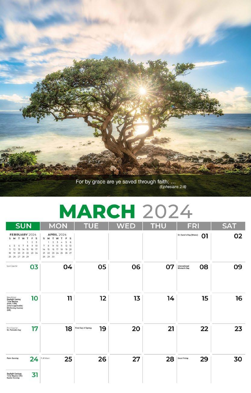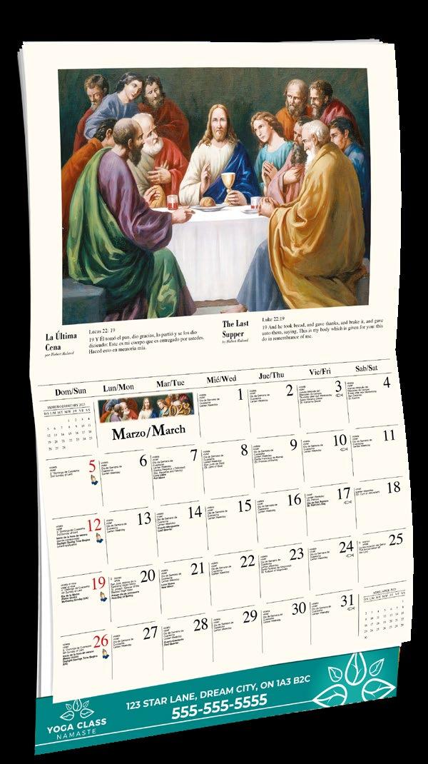 INCLUDED IN PRICE OF CALENDAR YOUR CHOICE OF 4 STANDARD COLOURS IMPRINT STANDARD ONE COLOUR BLACK REFLEX BLUE RED (185) GREEN (342) • 1 Colour Set-up – $35 (c) Imprint Area 1¼” x 10” • Full Colour Set-up - $35 (c) Imprint Area 1¼” x 10” Imprint Area 1⅝” x 10 ⅞” (bleed on bottom & sides) • Open Size 10 ⅝” x 18 ½” • Closed Size 10 ⅝” x 10” • Weight 22 lbs. per 100. Mix & Match Titles Minimum 50/Title www.GalleriaCalendars.com MATRIX TIRE CENTRE 1237 DUNWOODY AVENUE, DULUTH, GEORGIA 770-555-9854 18 YOUR COMPANY’S NAME PERSONAL MESSAGE SPACE! 123 ADDRESS, YOUR TOWN/CITY, ST 12345 (PH) 555.555.5555 • EMAIL@ADDRESS.COM • WWW.YOURWEBSITE.COM FAITH PASSAGES 2024-0225 2024-0259 Bilingual SP/ENG