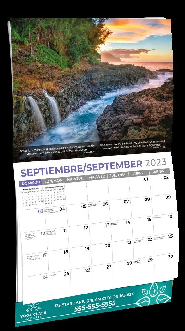 CUSTOM CALENDARS/COVERS - Minimum order is 10,000 for custom calendars, only available on orders submitted by September 30, 2023 Minimum order is 1,000 calendars/titles for custom covers available until October 31, 2023. Please call your CSR for details and quote.