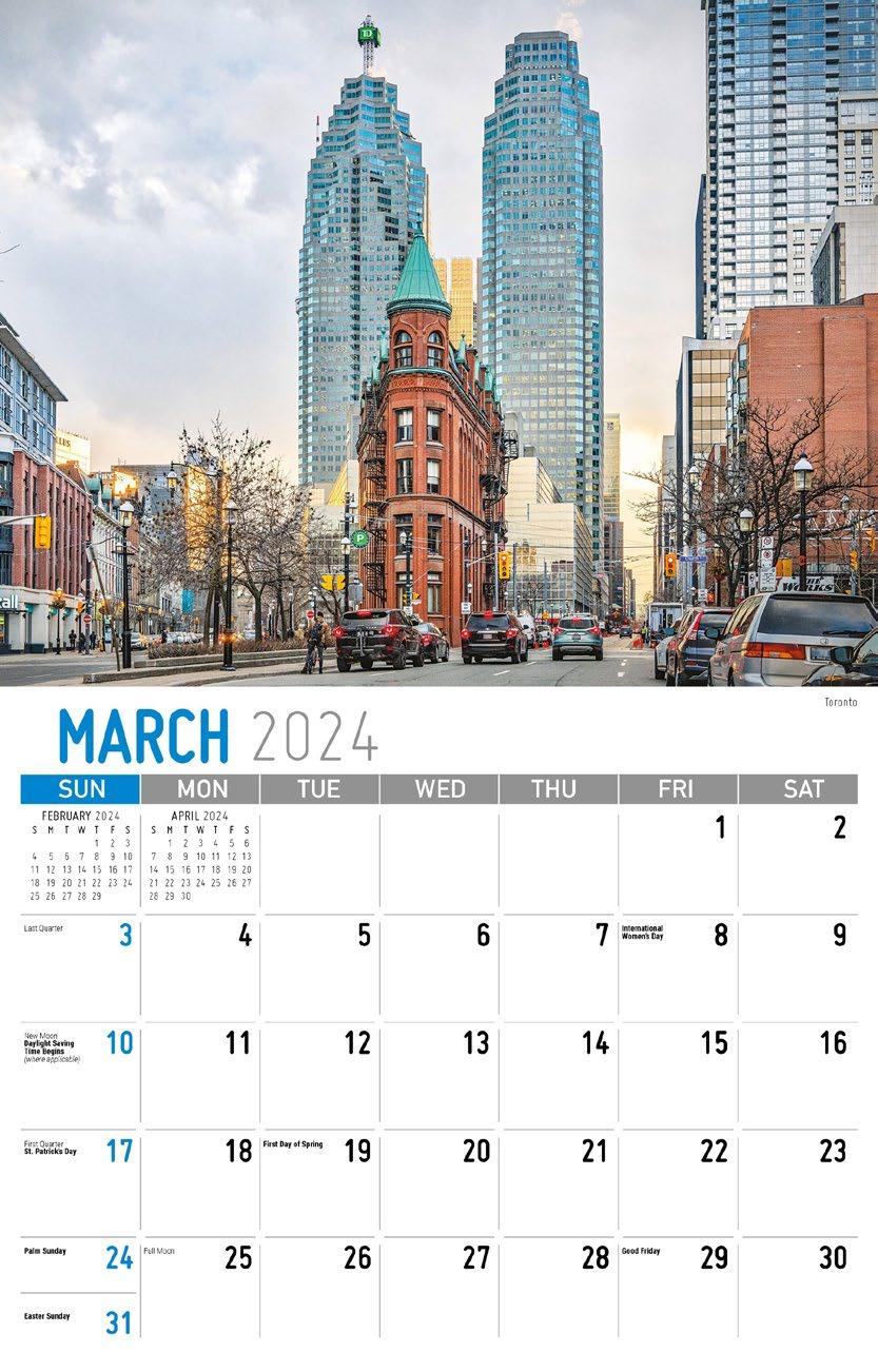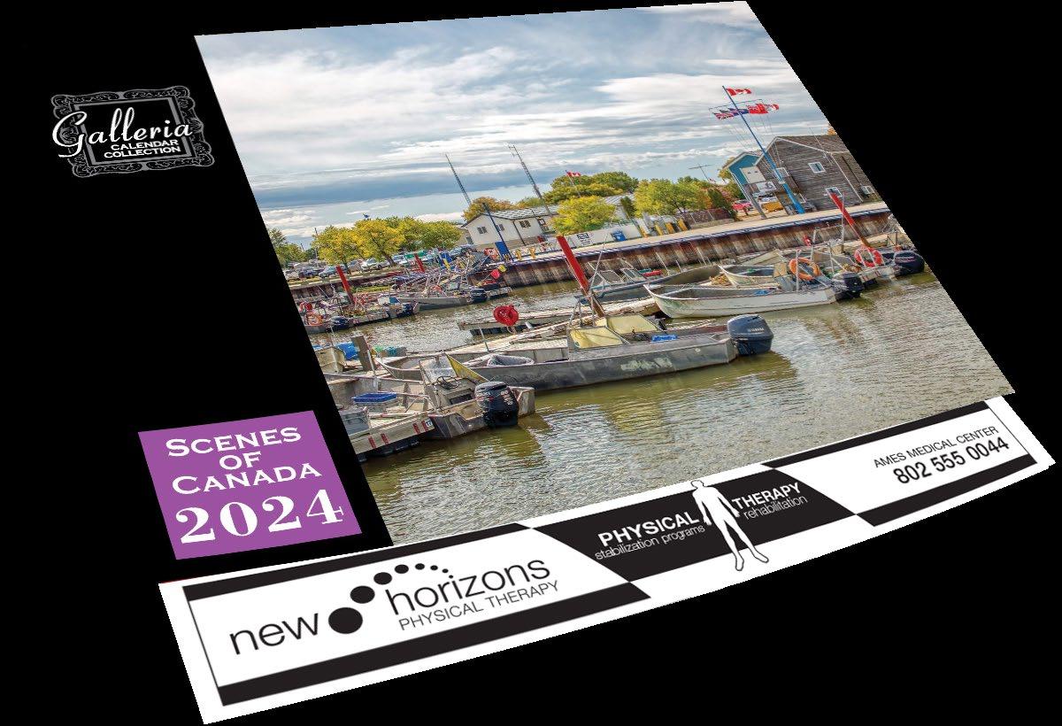 INCLUDED IN PRICE OF CALENDAR YOUR CHOICE OF 4 STANDARD COLOURS IMPRINT STANDARD ONE COLOUR BLACK REFLEX BLUE RED (185) GREEN (342) • 1 Colour Set-up – $35 (c) Imprint Area 1¼” x 10” • Full Colour Set-up - $35 (c) Imprint Area 1¼” x 10” Imprint Area 1⅝” x 10 ⅞” (bleed on bottom & sides) • Open Size 10 ⅝” x 18 ½” • Closed Size 10 ⅝” x 10” • Weight 22 lbs. per 100. Mix & Match Titles Minimum 50/Title www.GalleriaCalendars.com MATRIX TIRE CENTRE 1237 DUNWOODY AVENUE, DULUTH, GEORGIA 770-555-9854 6 2024-0059 SCENES OF ONTARIO YOUR COMPANY’S NAME PERSONAL MESSAGE SPACE! 123 ADDRESS, YOUR TOWN/CITY, ST 12345 (PH) 555.555.5555 • EMAIL@ADDRESS.COM • WWW.YOURWEBSITE.COM