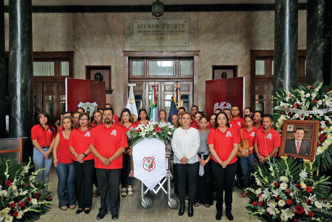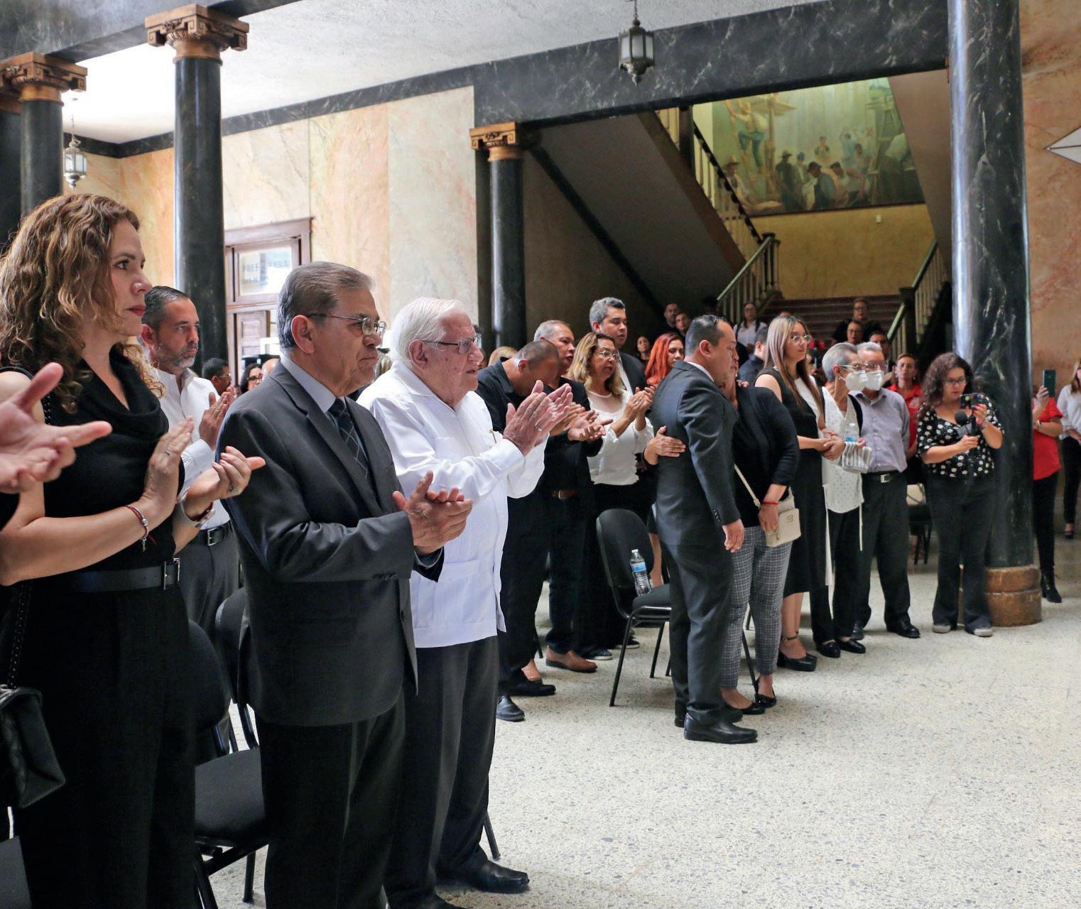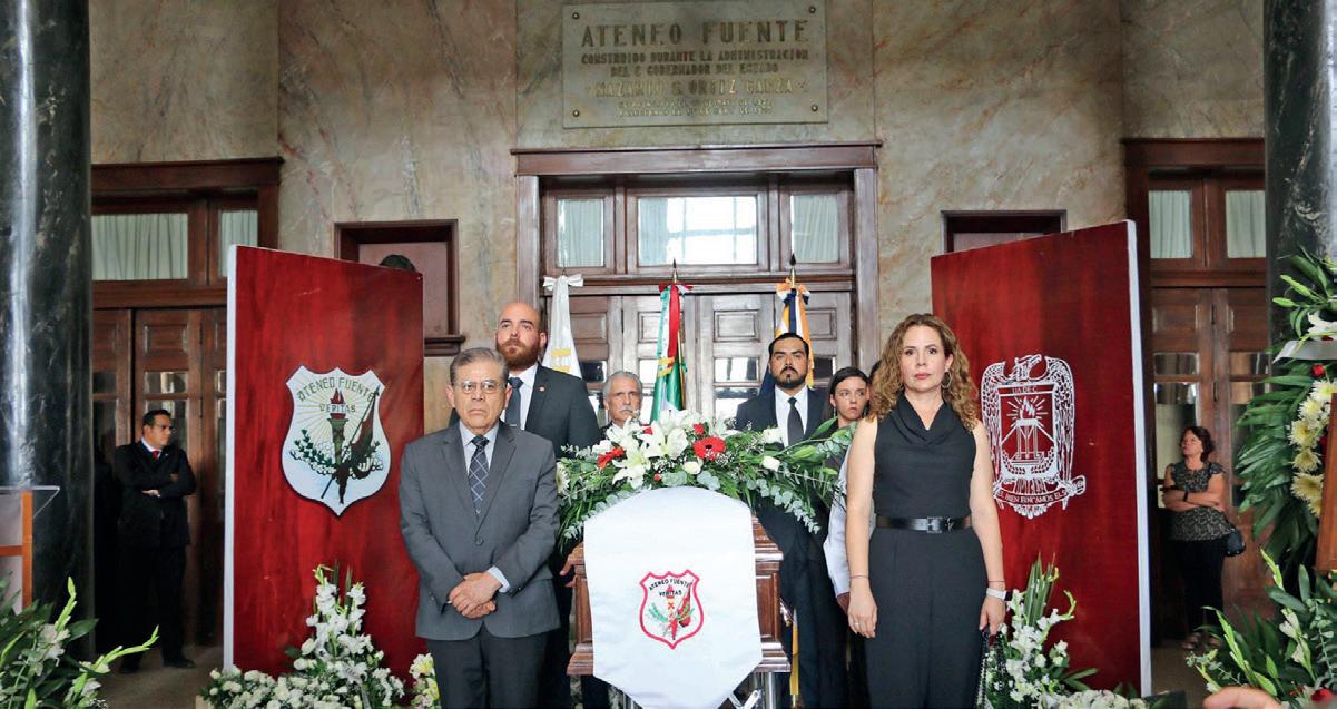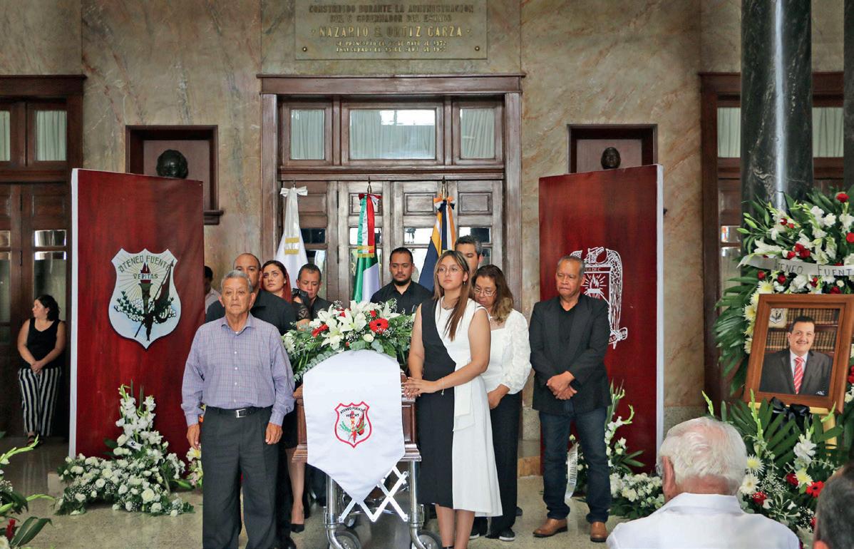 Familia, universitarios y amigos, se dieron cita para despedir al Maestro y director del Ateneo Fuente, con guardias de honor que encabezaron, el rector Salvador Hernández Vélez y el director Decano y Cronista de la Ciudad, Armando Fuentes Aguirre, “Catón”.
