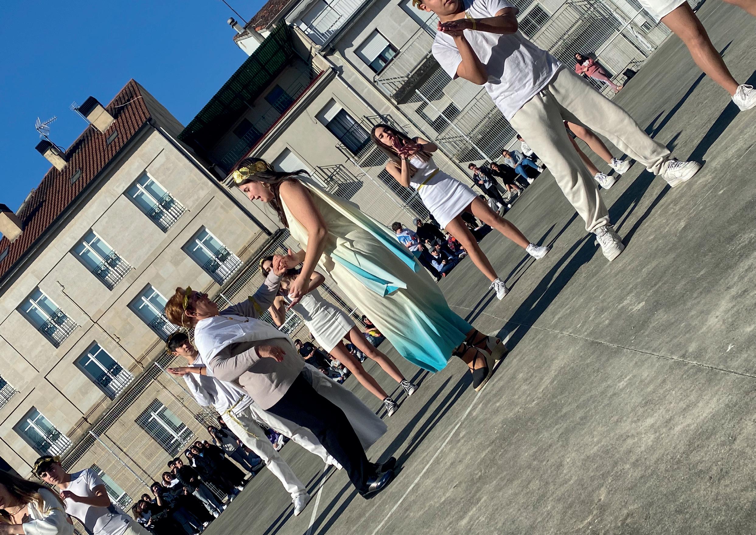 Dende o Centro Interxeracional todas aquelas persoas que quixeron participar, previamente, uníronse aos grupos de comparsas de 3º da ESO e, de xeito conxunto, decidiron a temática dos disfraces, planificaron e ensaiaron as coreografías ao longo de diferentes encontros programados. E chegou o día! O 17 de febreiro, nas instalacións do I.E.S Ramón Otero Pedrayo, o alumnado e as persoas do Centro Interxeracional compartiron e gozaron da festa do Entroido representando aos moteiros máis heavys da contorna xunto cos protagonistas das praias galegas conxugandose nun único grupo con unha mesma coreografía final. E non esquecemos á nosa deusa grega do Centro Interxeracional que compartiu pasos de baile, emoción e camaradería xunto co resto de deuses e deusas do Otero. Sen cabida a prexuízos, sen importar a idade e sempre festexando a vida.