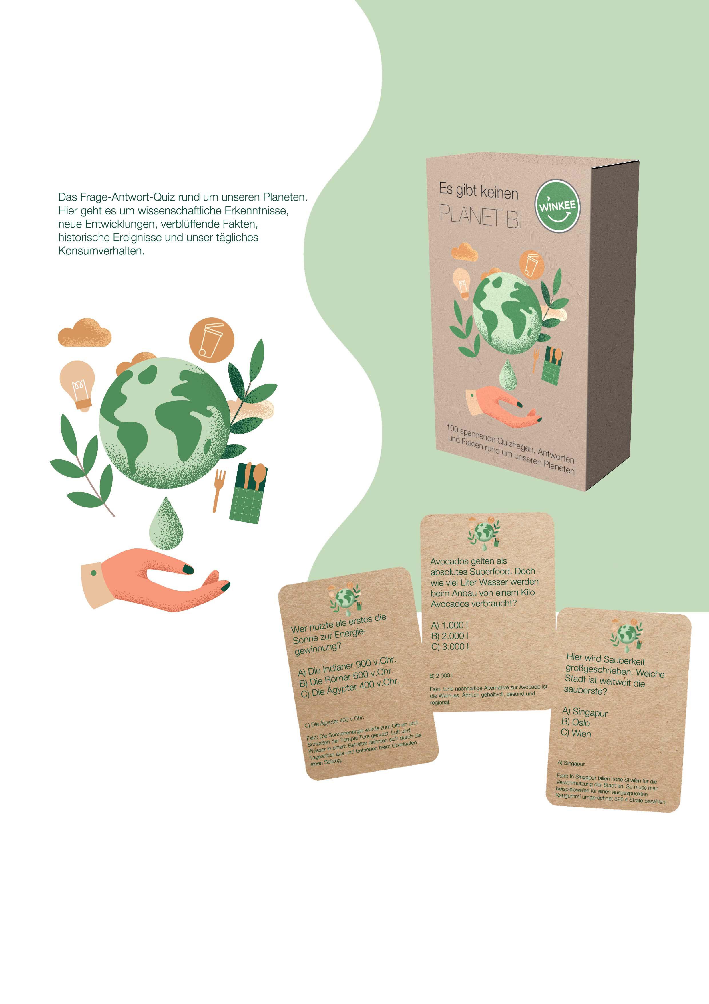 › Unsere Umwelt hat viele Probleme, mit diesem informativen Spiel lernst du zahlreiche davon auf spielerische Weise kennen › 100 Karten, 100 Fakten, 100 unterhaltsame Fragen, Antworten und Erklärungen › Spiel vollständig aus recycelten Materialien hergestellt und selbstverständlich auch vollständig recycelbar